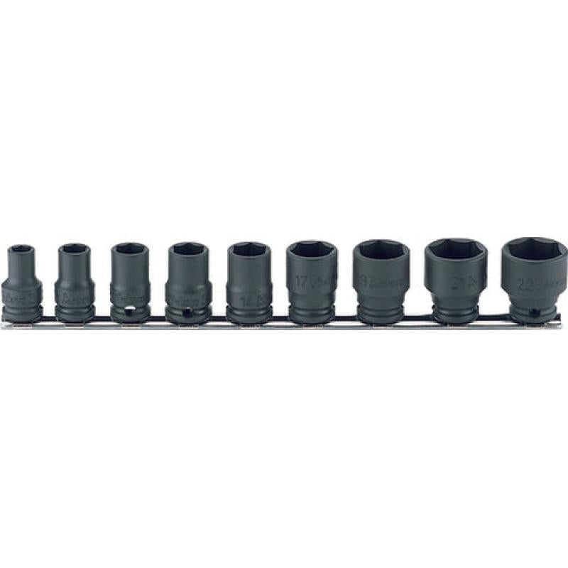Ko-Ken RS13401M/9 3/8 Sq. Dr. Socket set 8-22mm 6 point Thin walled 9 pieces