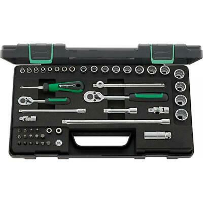 48 piece, 3/8" bi-hex and 1/4" hex socket set. Comes with ratchets and accessories in ABS plastic case for safe storage