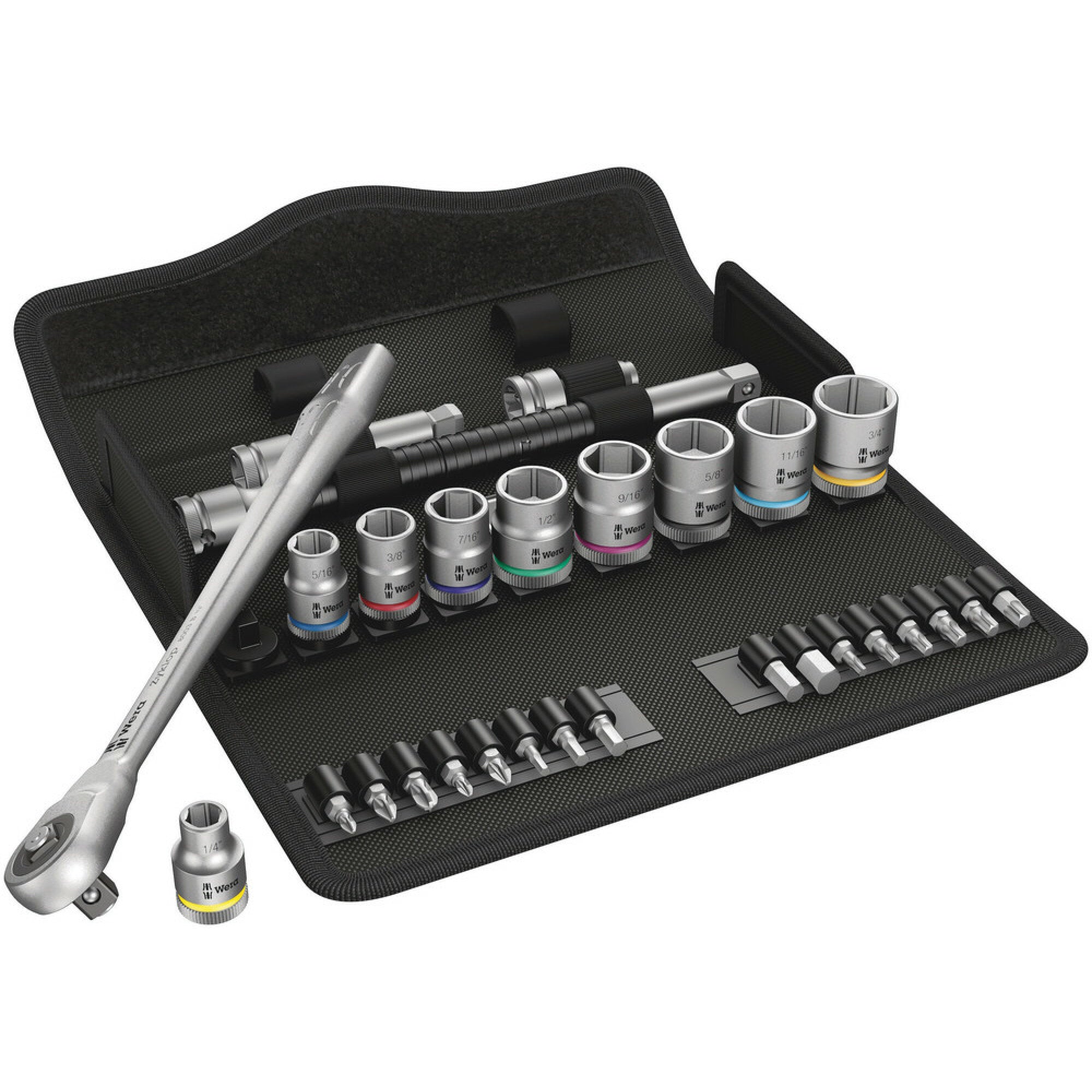 Wera 8100 SB 10 Zyklop Metal Ratchet Set with push-through square, 3/8" drive, imperial, 29 pieces