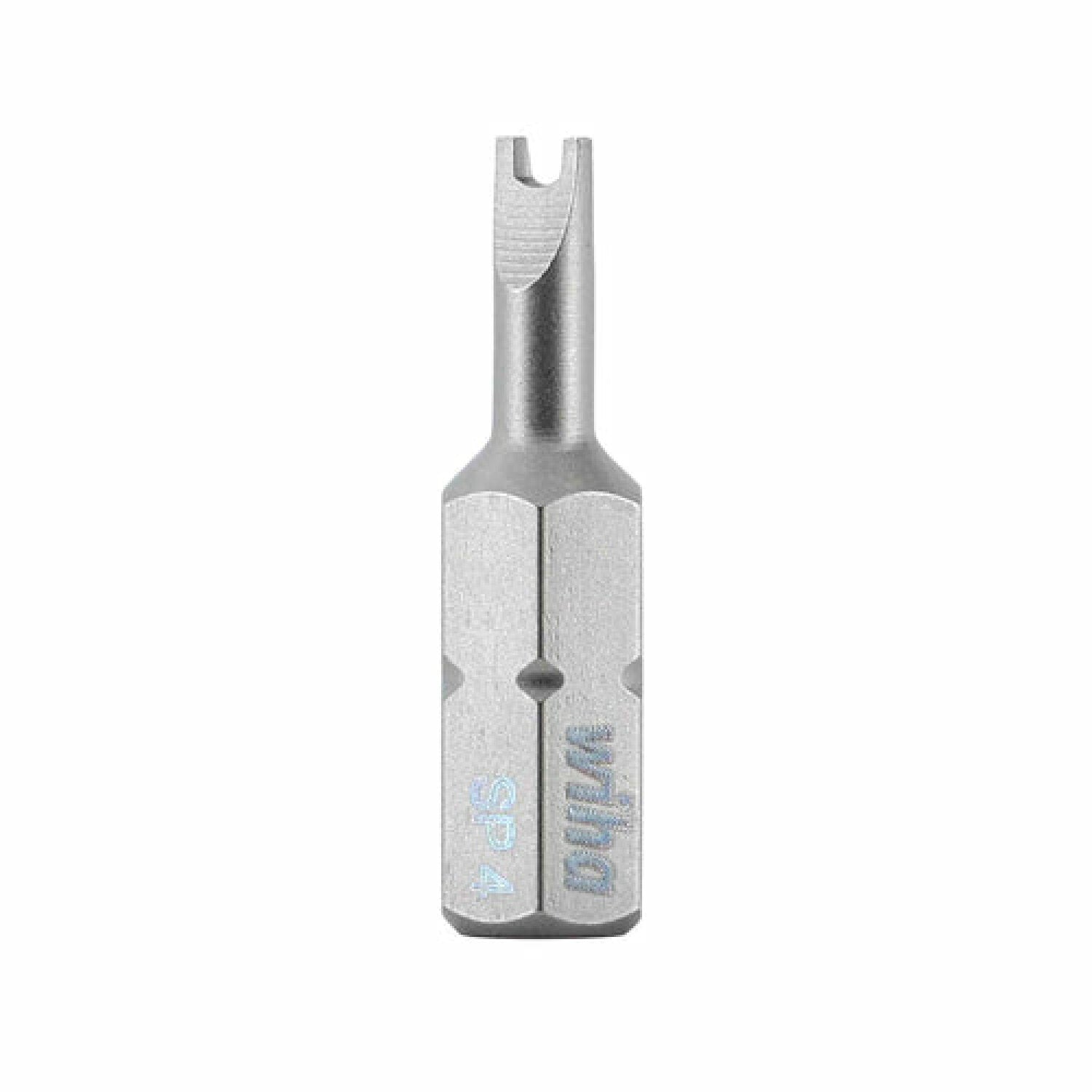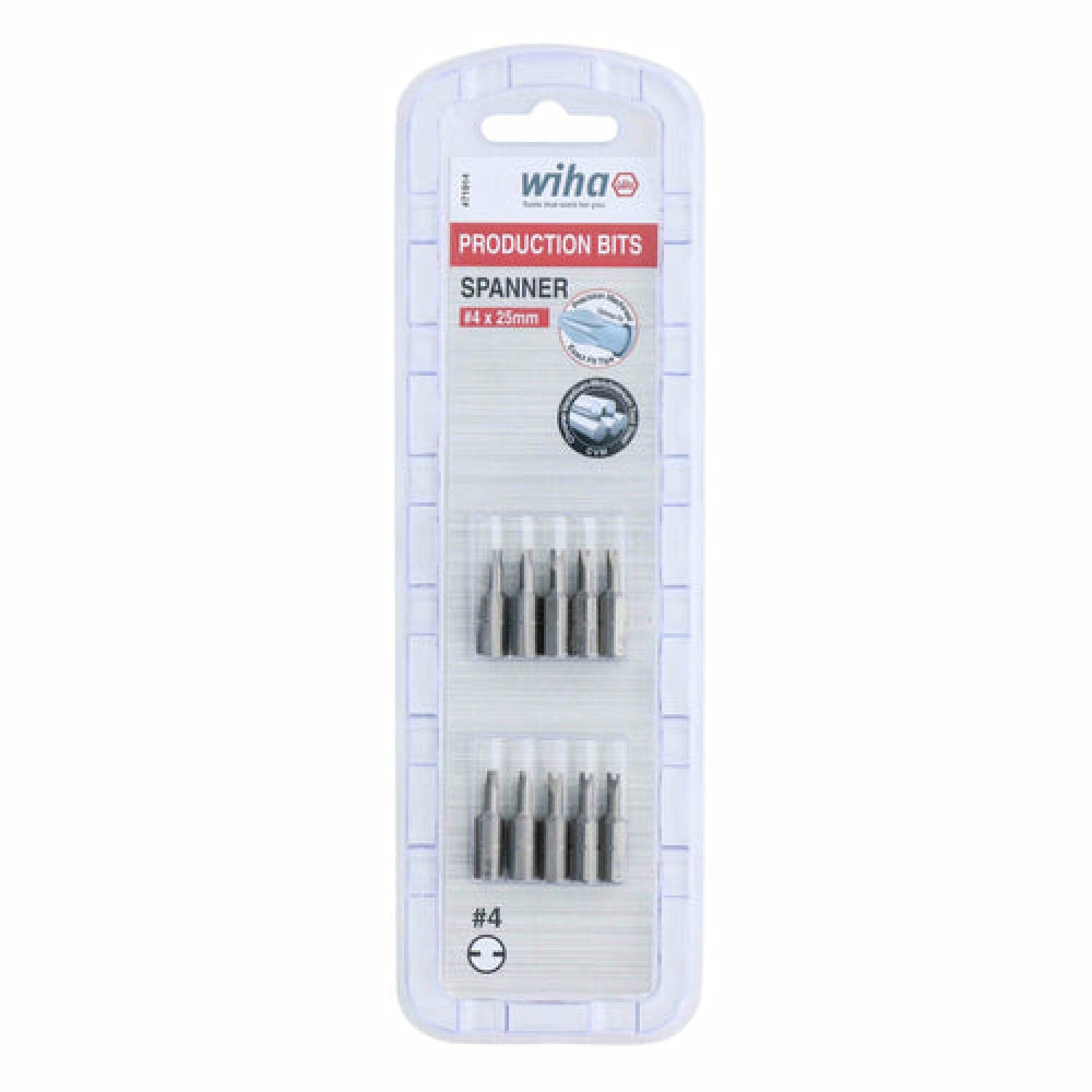 Wiha Spanner bits have tips that are exact fit, precision machined to high tolerances, and are made from durable tool steel. The bits are hardened with computer controlled heat treating for maximum durability. Wiha Spanner bits are designed for applications requiring high wear resistance. Wiha Spanner bits have a universal fit for all standard bit holders and power tools. Wiha bits are guaranteed for their long lasting performance in the toughest and most demanding applications.Spanner Insert Bit #4 x 25mm