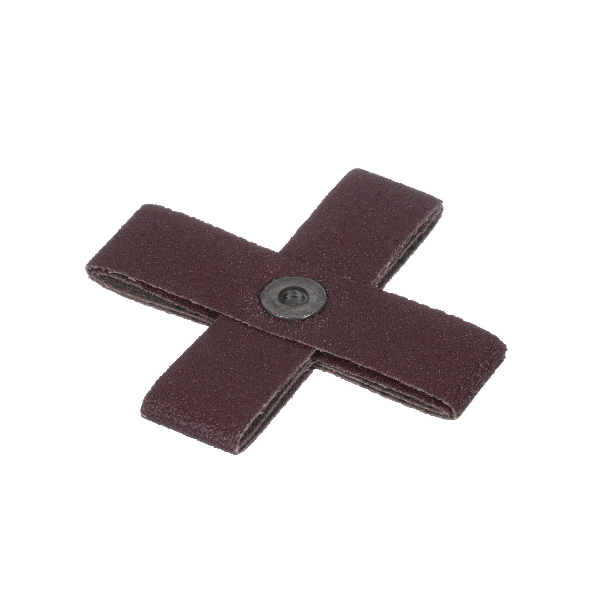 The cross pad has a metal eyelet that attaches to a mandrel and may be used with a rotary tool. By changing mandrel length, the user may shorten or extend the pad’s reach. Standard Abrasives™ Cross Pads are manufactured from a variety of minerals, including Aluminum Oxide, Zirconia, Ceramic and Silicon Carbide (each sold separately). All minerals are securely anchored to the backing with a strong, heat-resistant resin bond. Combining cushion, flexibility and an aggressive cut, these well-rounded abrasive products offer outstanding versatility.
