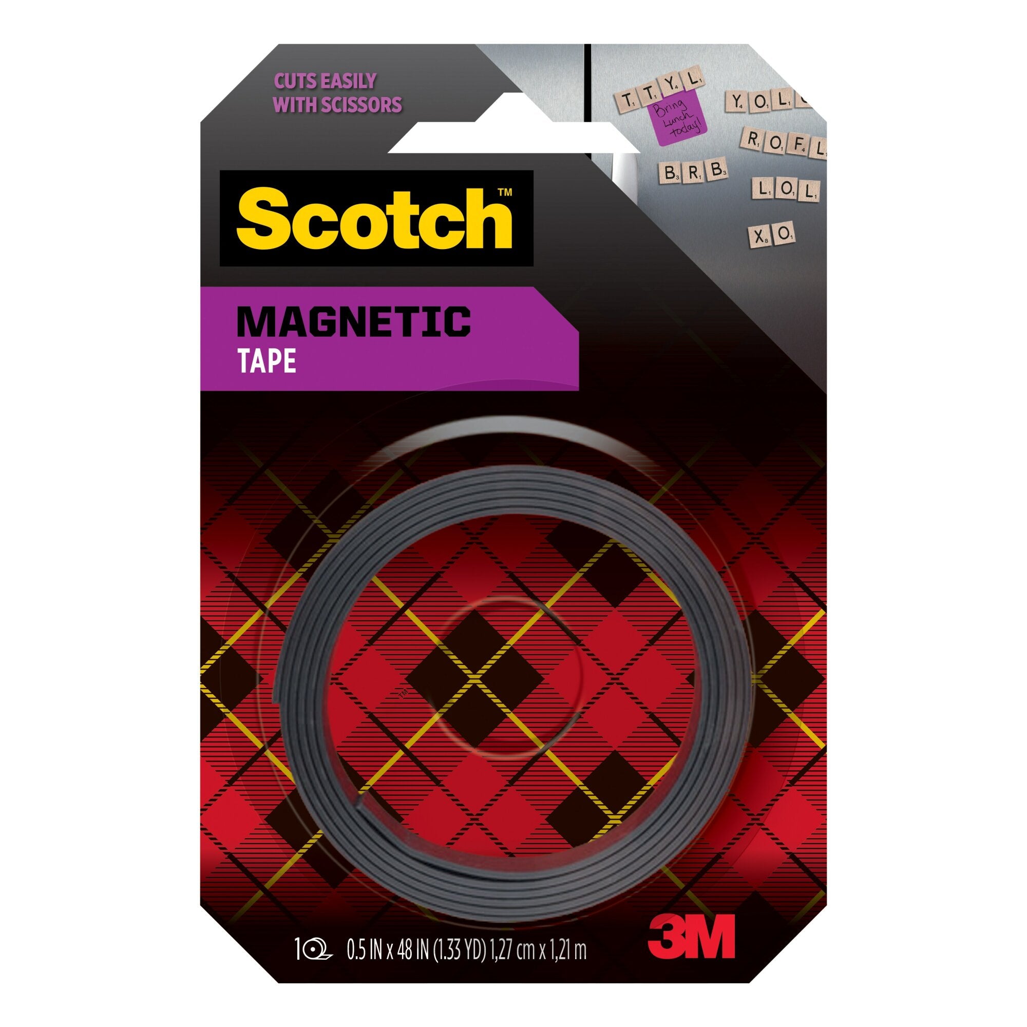 Scotch Magnetic Tape features 3M Permanent Adhesive on one side and a magnet on the other. Holding lightweight items on magetic surfaces this tape is ideal for crafting projects.Make anything instantaneously magnetic with Scotch Repositionable Magnetic Tape. Simply cut your desired amount, adhere to your treasure and mount it on a magnetic surface for all to admire. This permanent magnetic tape also saves precious storage space by mounting lightweight kitchen equipment, tools, or grooming essentials up on your wall for quick and easy access. So let your imagination run wild in your home, garage, school and office with Scotch Repositionable Magnetic Tape.