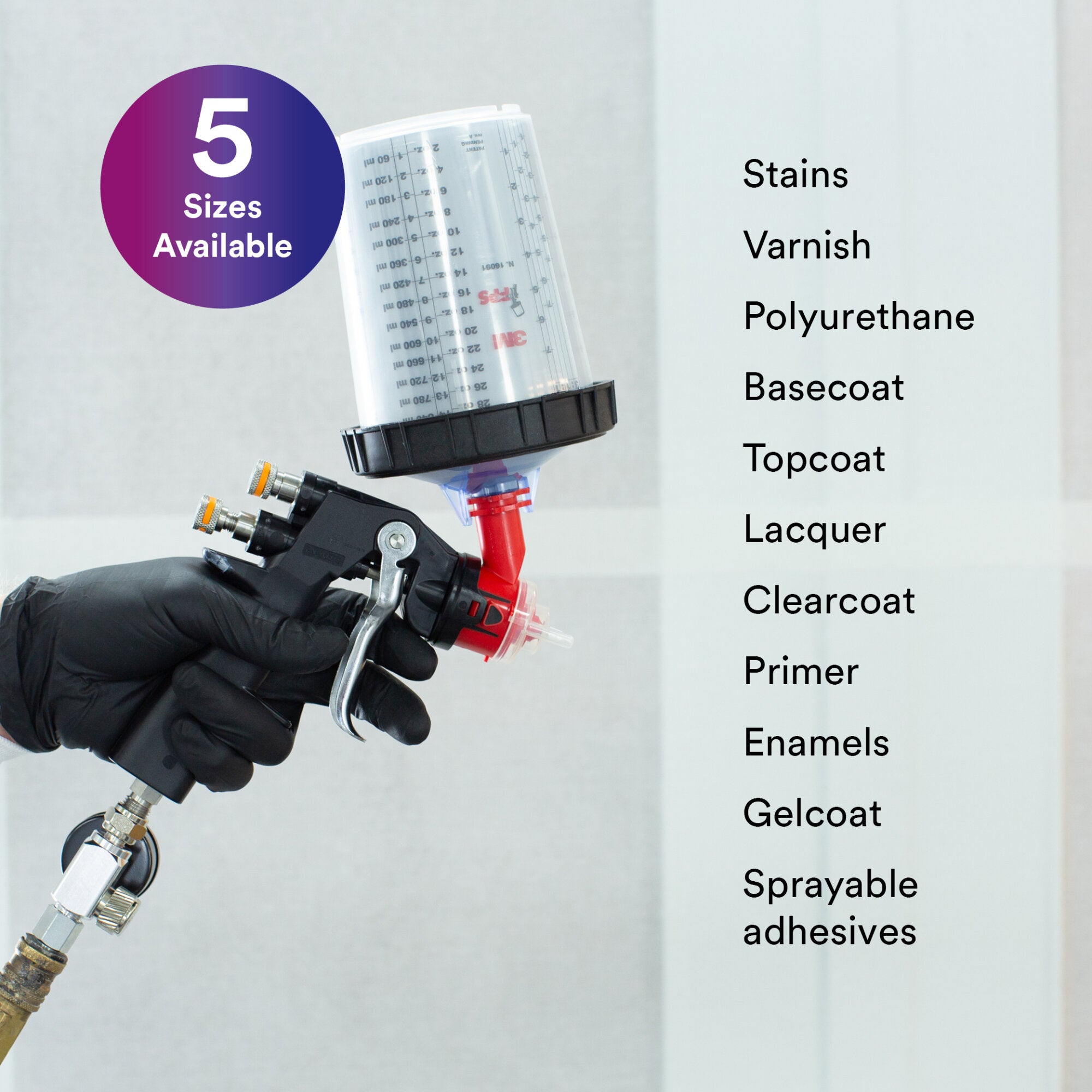 - Available for PPS™ Cups & Collars in five sizes (90mL – 850mL; 3 fl oz - 28 fl oz) for jobs ranging from spot repairs to 4-panel repairs