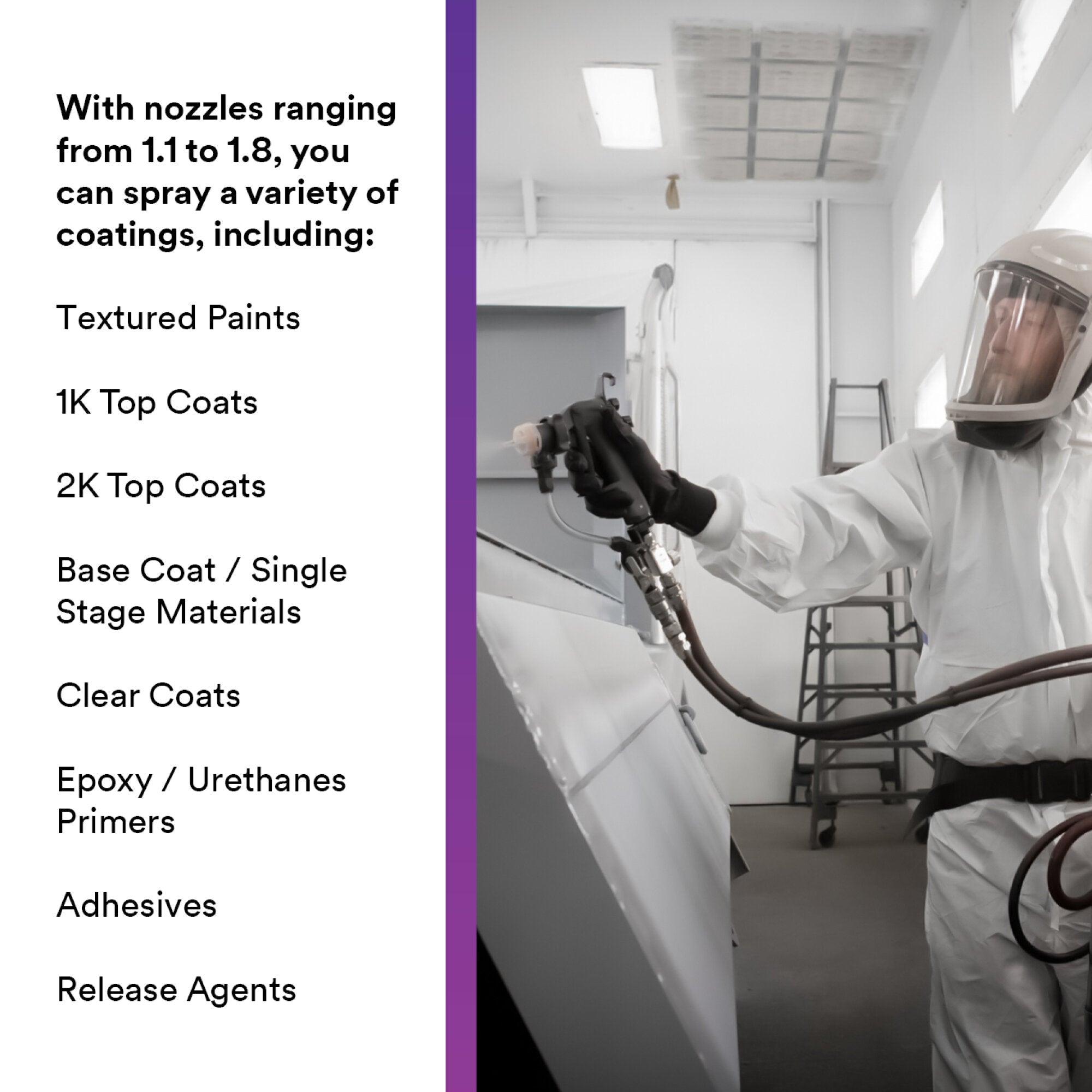 - Kit includes two of each size 1.1, 1.4, 1.8 nozzles to spray a wide range of industrial coatings