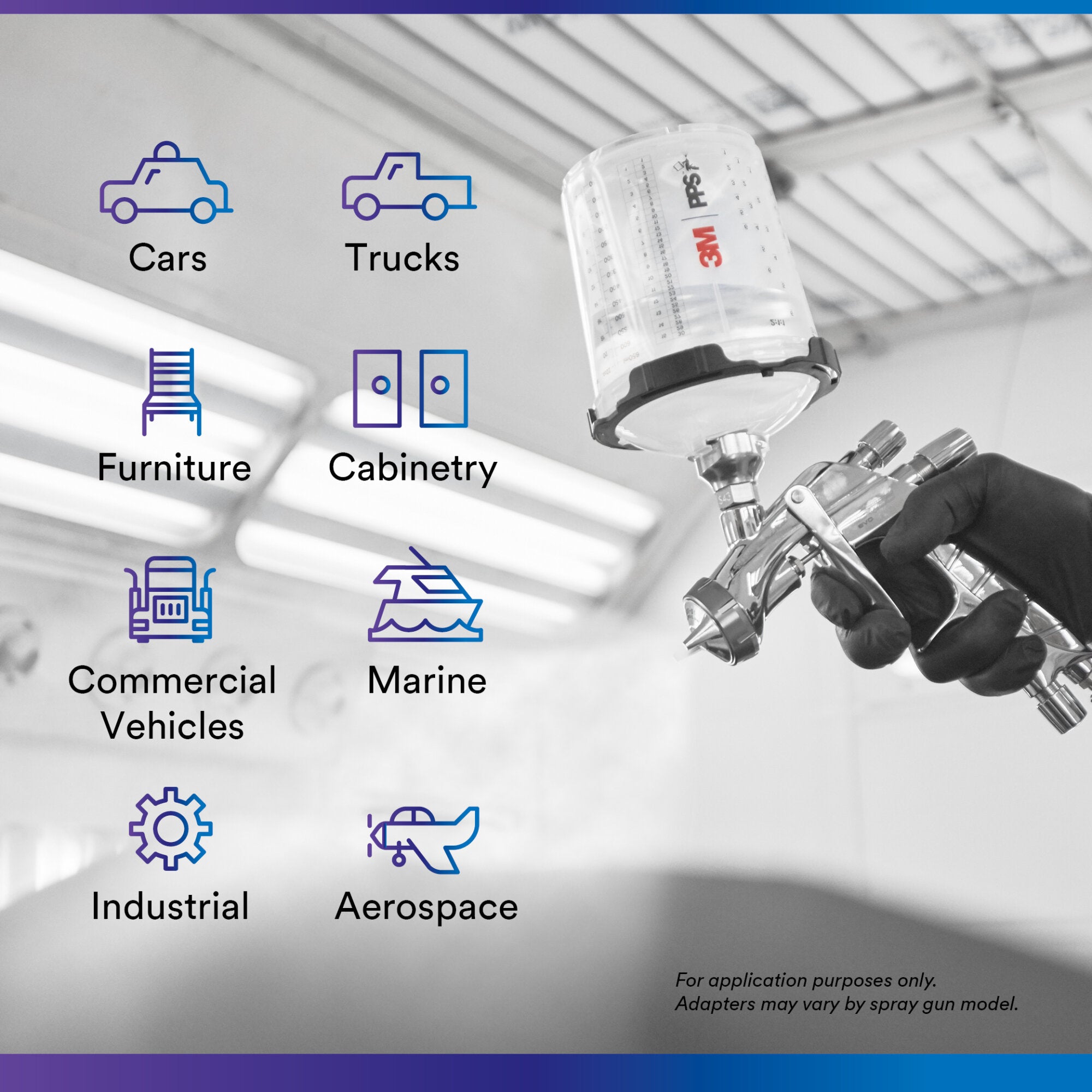 - Adapter converts virtually any cup spray guns into ones that work with 3M™ PPS™ Series 2.0, our next generation, highest performing disposable spray cup system