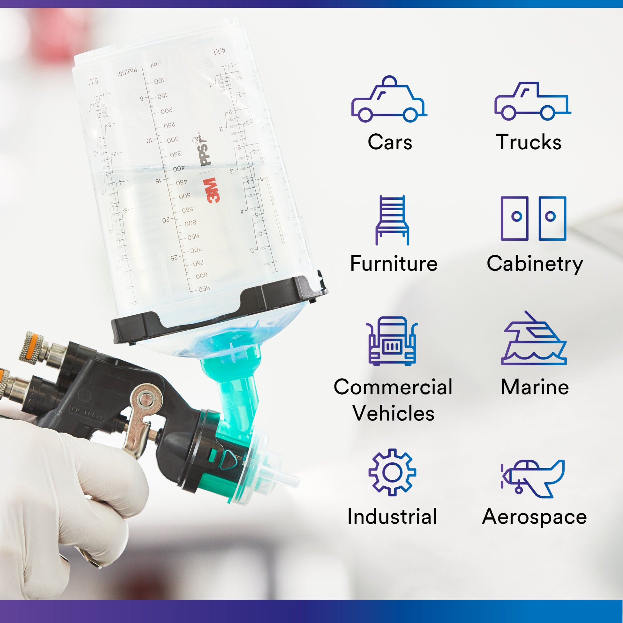 - 3M™ PPS™ reduces cleaning solvent consumption by up to 70% and reduces prep and clean-up time by up to 50%; compared to conventional paint cup systems
