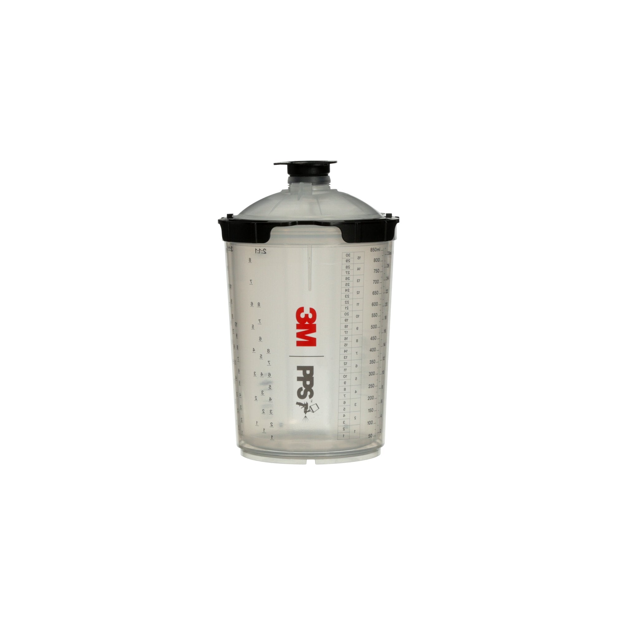 Our PPS™ 2.0 Spray Cup System is available in 5 sizes: 3 oz (90mL), 6.8 oz (200mL), 13.5 oz (400mL), 22 oz (650mL) and 28 oz (850mL). Using the right size cup for every repair not only reduces your cost per lid and liner, it can reduce the likelihood of overmixing.