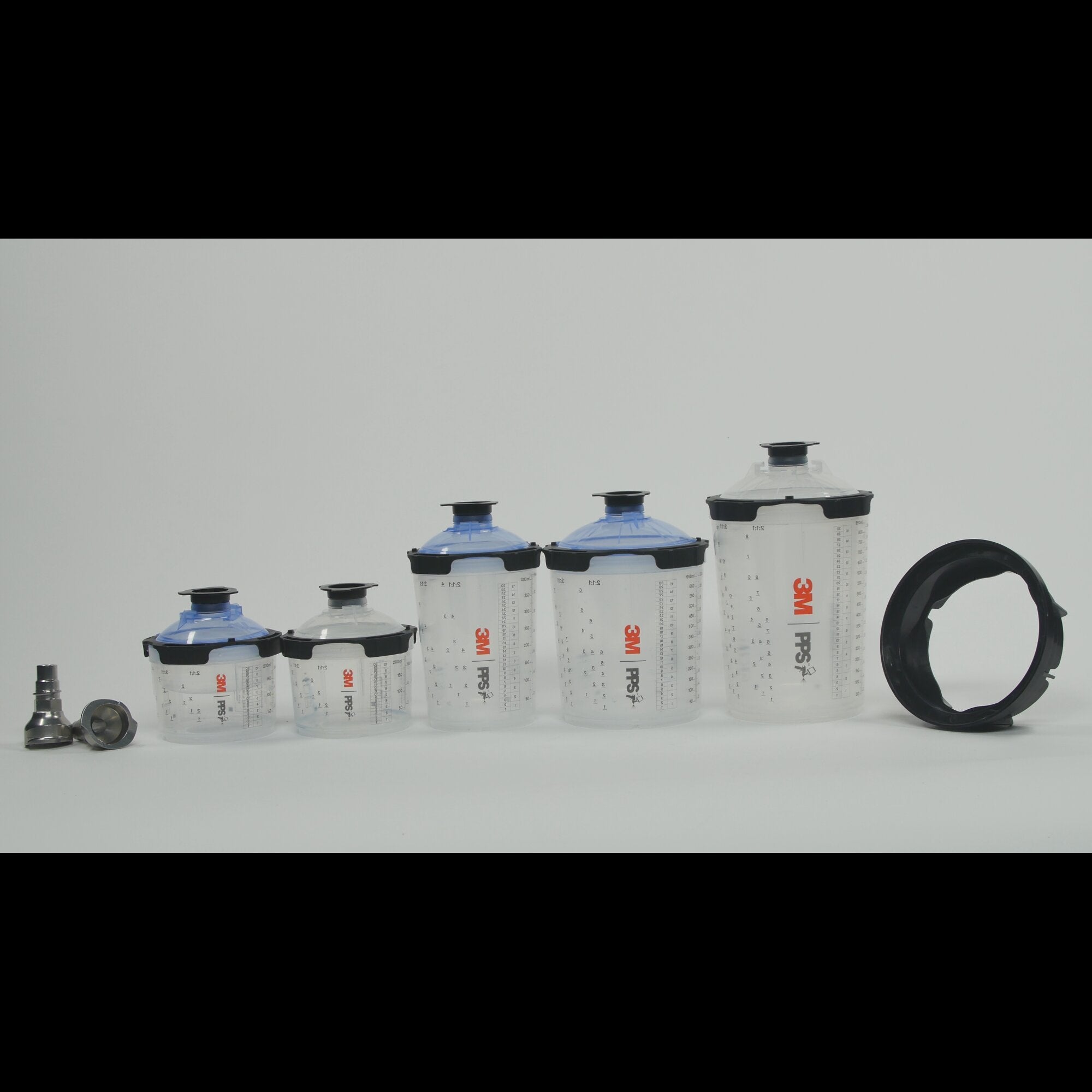 3M™ PPS™ Series 2.0 Kit features the next generation of the 3M™ PPS™ paint preparation system. It contains all of the reusable, disposable components of the system: 50 disposable lids with integrated collars and full diameter filters, 50 disposable liners, 1 reusable hard cup and 32 sealing plugs. The 3M™ PPS™ system features disposable  lids, liners and hard plastic cups in 5 sizes: 3oz (90mL), 6.8oz (200mL), 13.5oz (400mL), 22oz (650mL) and 28oz (850mL). A choice of sizes offers maximum efficiency for every job, and helps lower your cost per use.