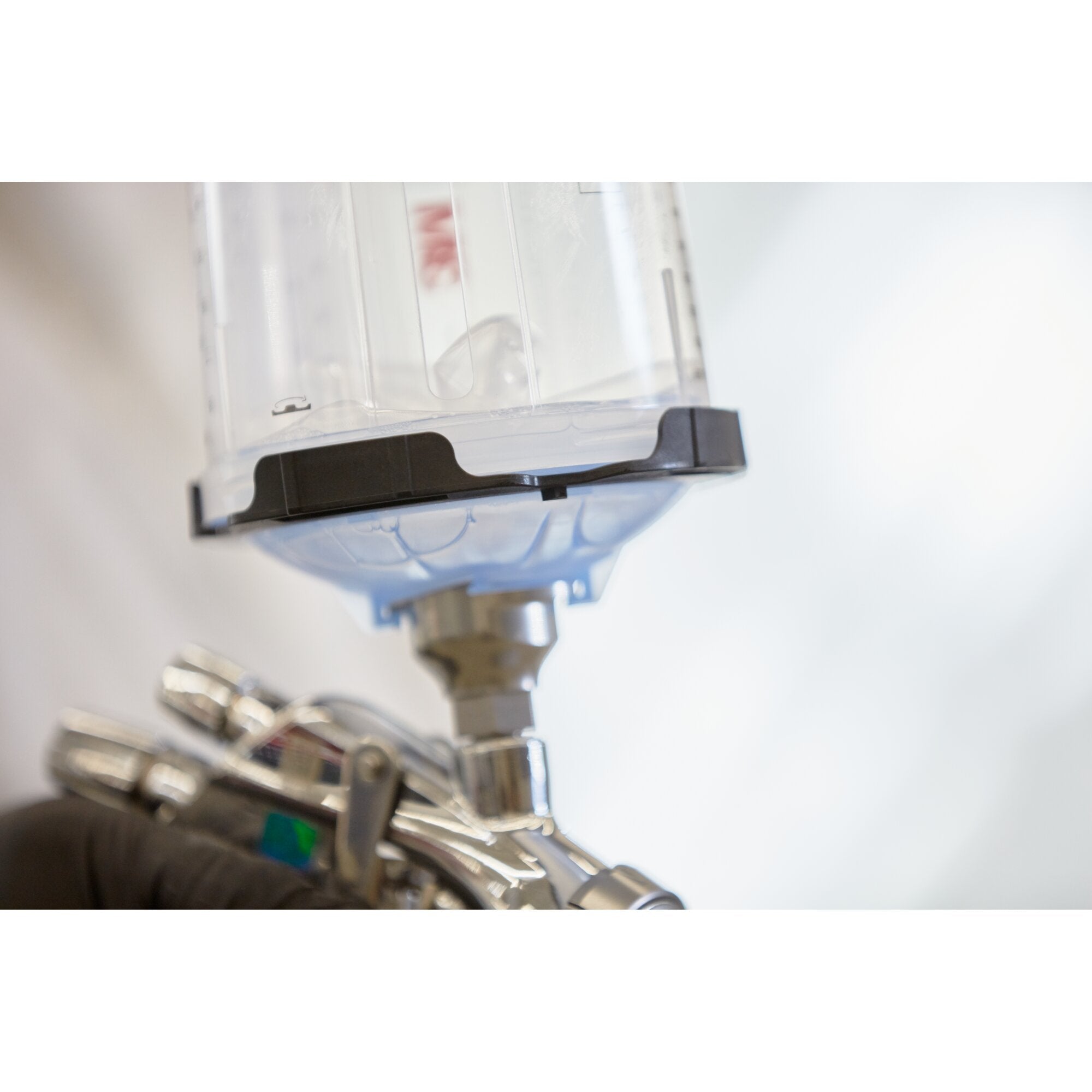 A new adapter design provides a four-point connection and a wider 360° platform to ensure a stable, reliable lid-to-spray-gun connection. Larger sealing plugs do more than just seal. For instance, you can turn the cup upside down and use the new sealing plug as a base for temporary sealing and protecting, helping keep the built-in filter wet and reducing the need for replacement lids.