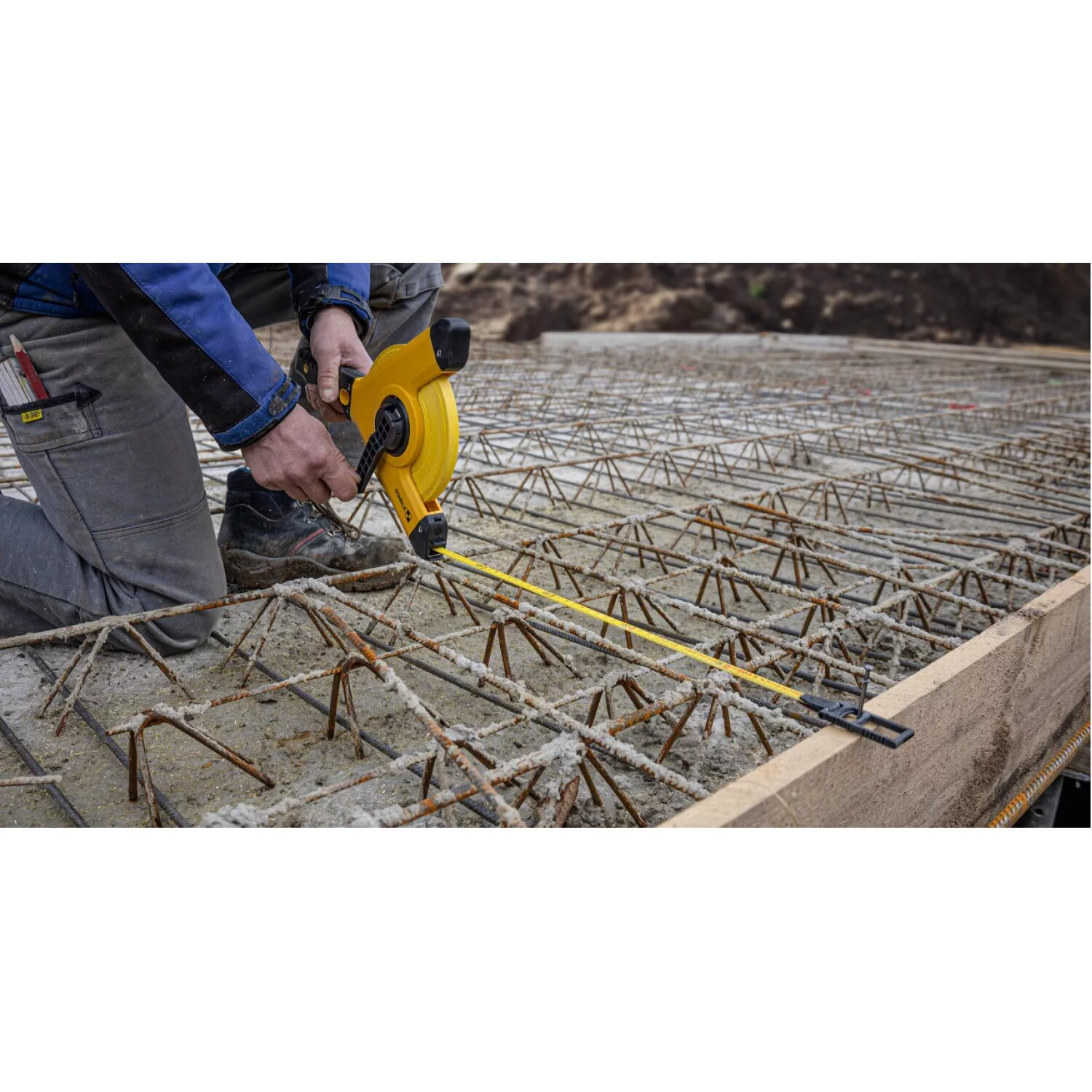 As an experienced professional, to measure long distances you need a tape measure that can withstand heavy-duty use every single day. The LBM 1000 STEEL combines several advantages: a shatterproof Y-reel, a rugged steel blade to protect the scale, and a universal hook for variable attachment options. Depending on the situation and application, you can choose between the fold-out metal hook with STABILA SPIKES coating, an integrated eyelet, or the large plastic ring with a nail groove. Suitable for use with either hand by simply switching the crank.