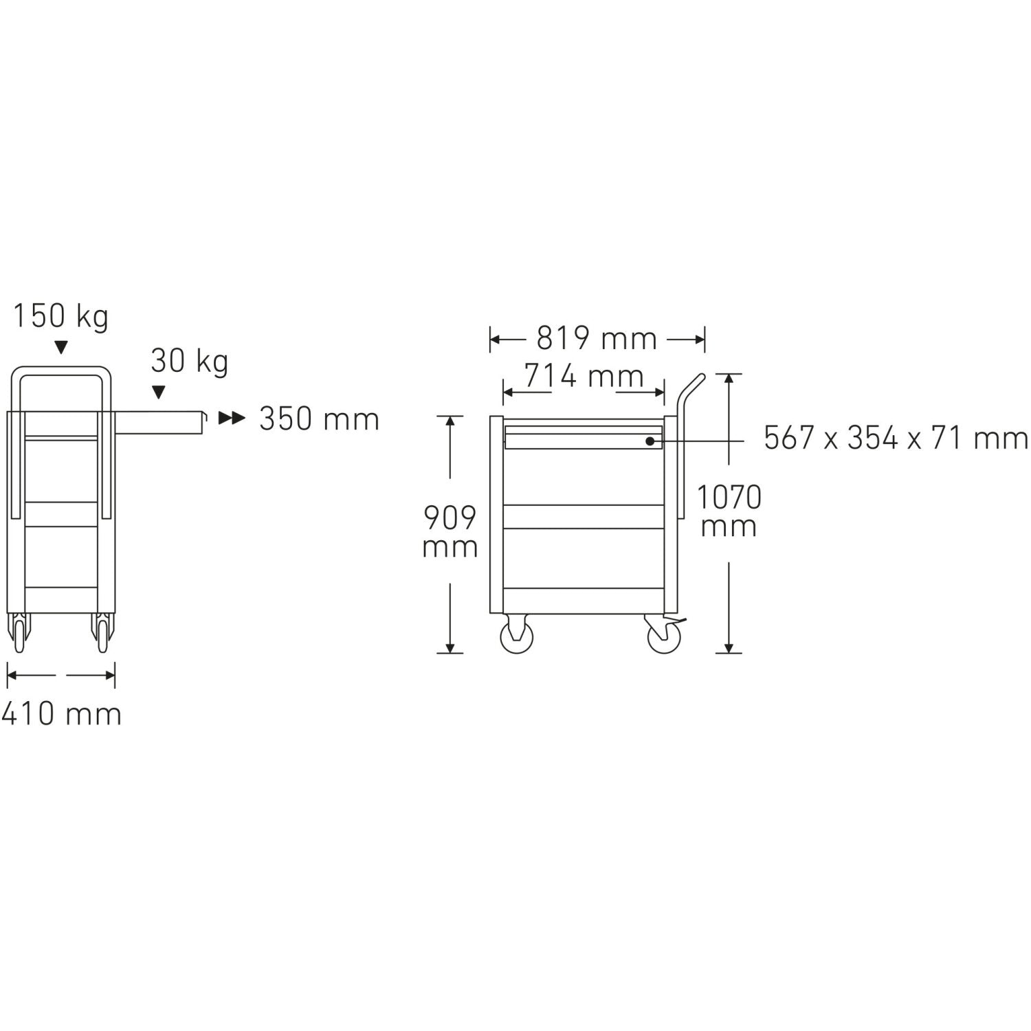 Space-saving: The Service Trolley is supplied as a space-saving kit with assembly instructions. No bulky goods - maximum flexibility - minimum assembly effort.
