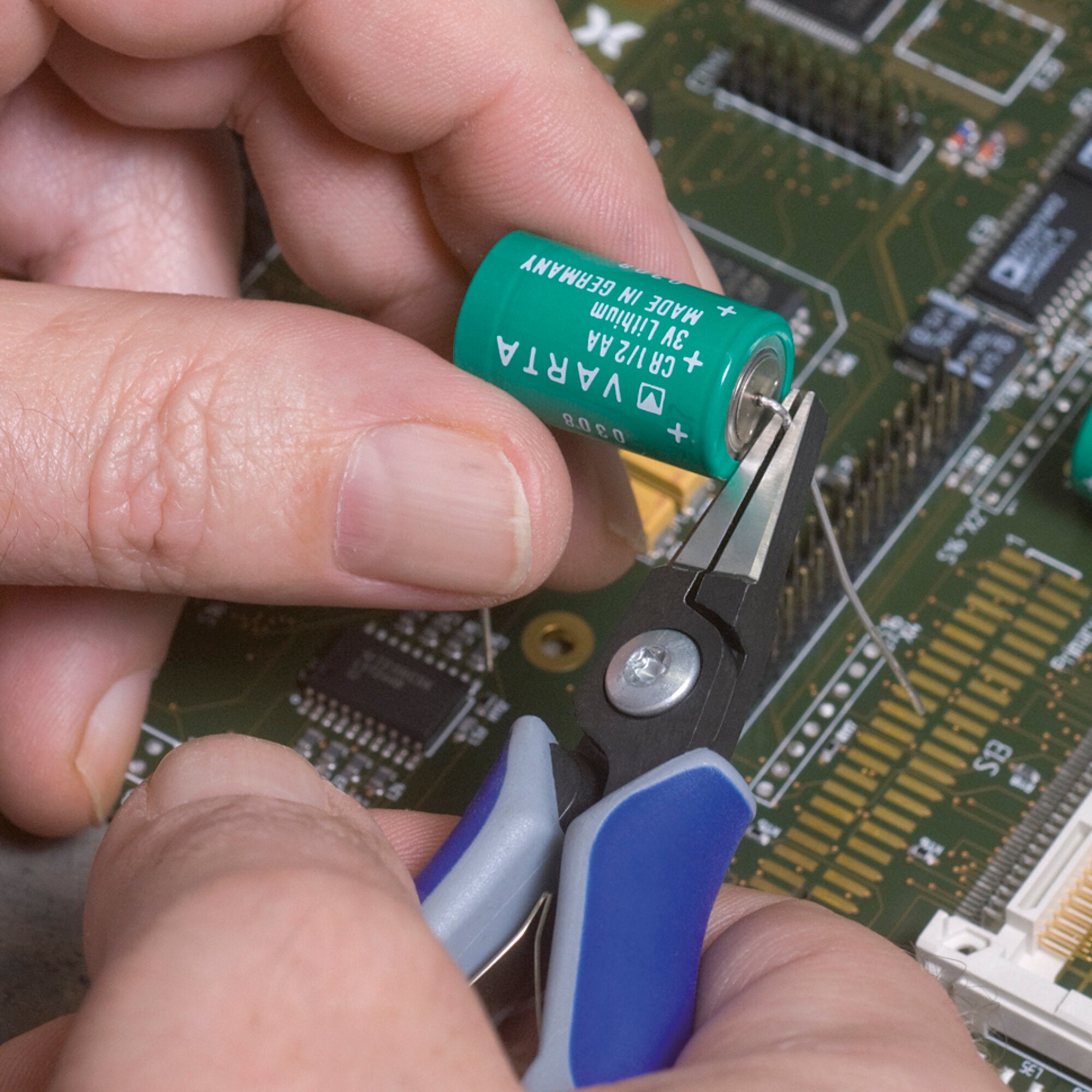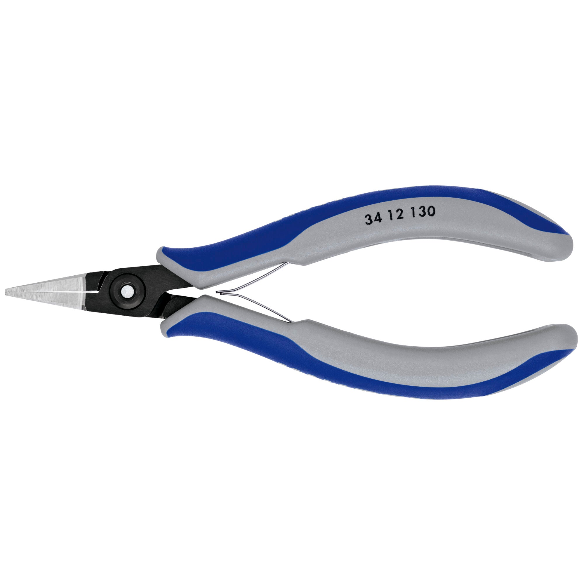 For very precise assembly work, e.g. in electronics and fine mechanics. Used for gripping, holding and bending. Smooth ground gripping surfaces. Approximately 20% lighter than conventional electronics pliers. Bolted joint and carefully manufactured joint surfaces for even, low-friction movement throughout the entire opening range. Double spring for a gentle and even opening. Multi-component grips for comfort when working on repetitive tasks. Flat, smooth, wide jaws. Chrome vanadium ball-bearing steel.