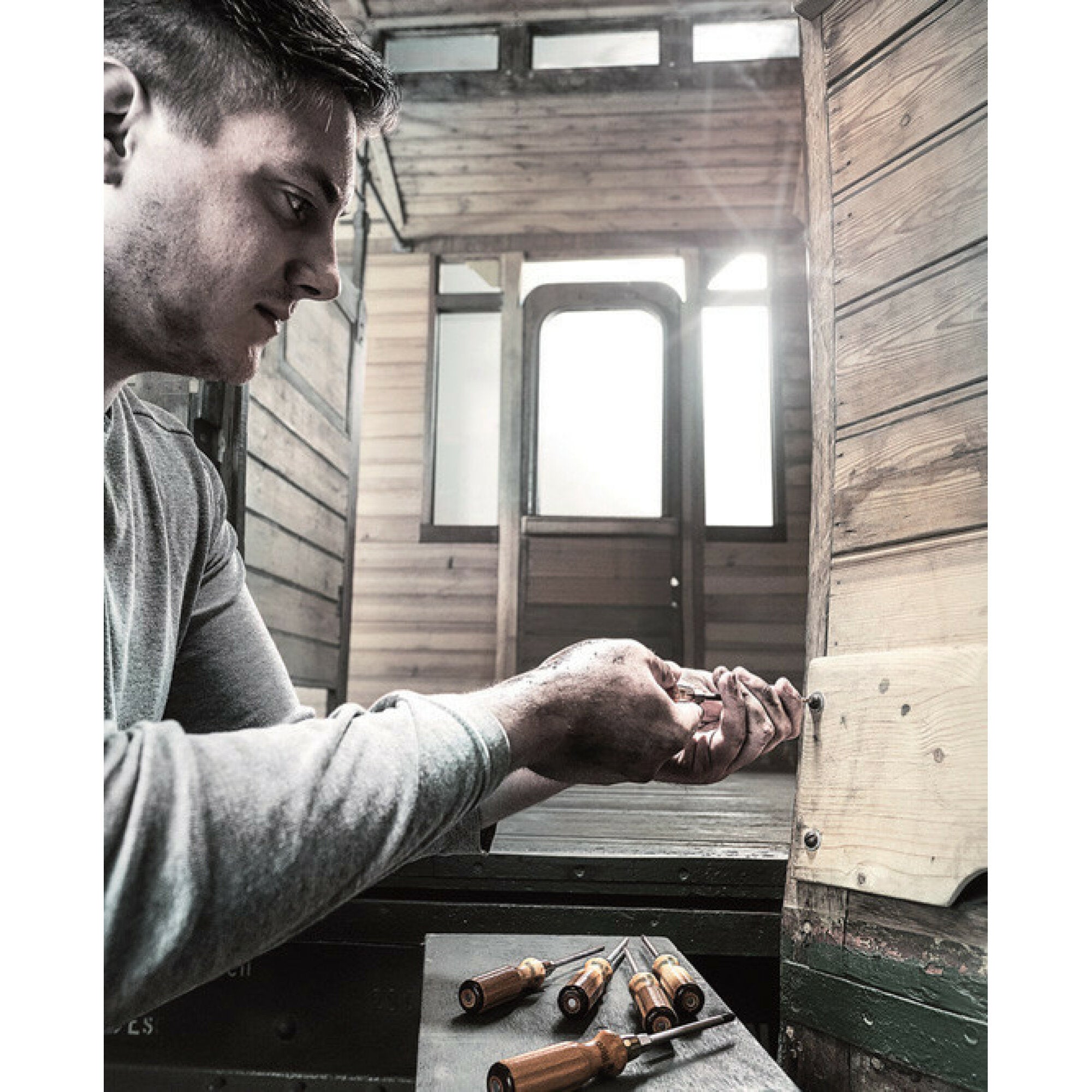 Reduced likelihood of splintering and driver can be used with a hammer thanks to reinforced leather cap
