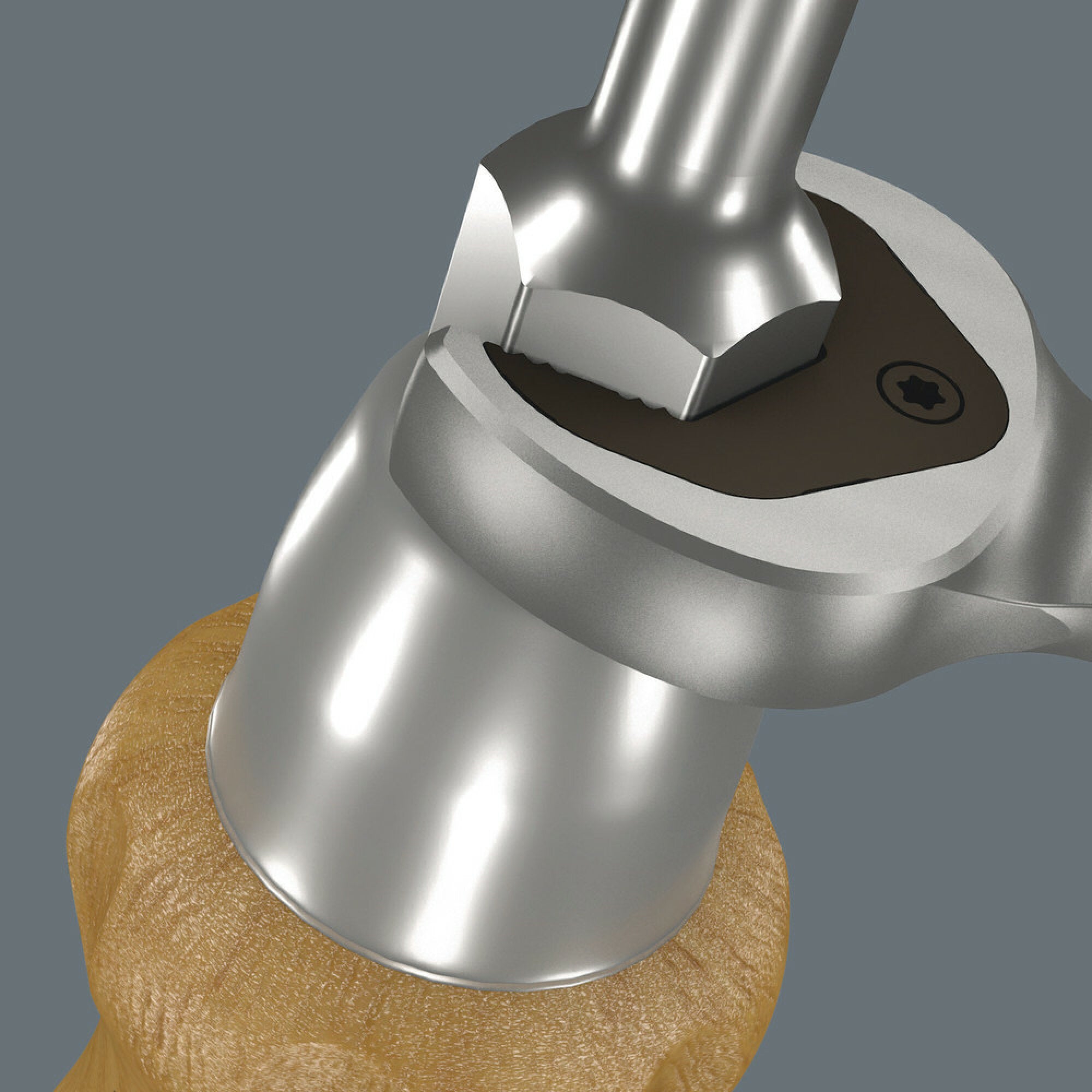 High quality screwdriver made out of hard beech wood that ensures a long product service life, even when the tool is subject to high strain. The double leather cap combined with the blade that extends right through the handle provide additional safety and reduce the danger of the handle splintering when struck with a hammer. Higher torque can be transferred by fitting an open-end or ring spanner over the hexagonal bolster. The Wera Black Point tip and a complex hardening process ensure a long service life of the tip, enhanced corrosion protection and an exact fit.