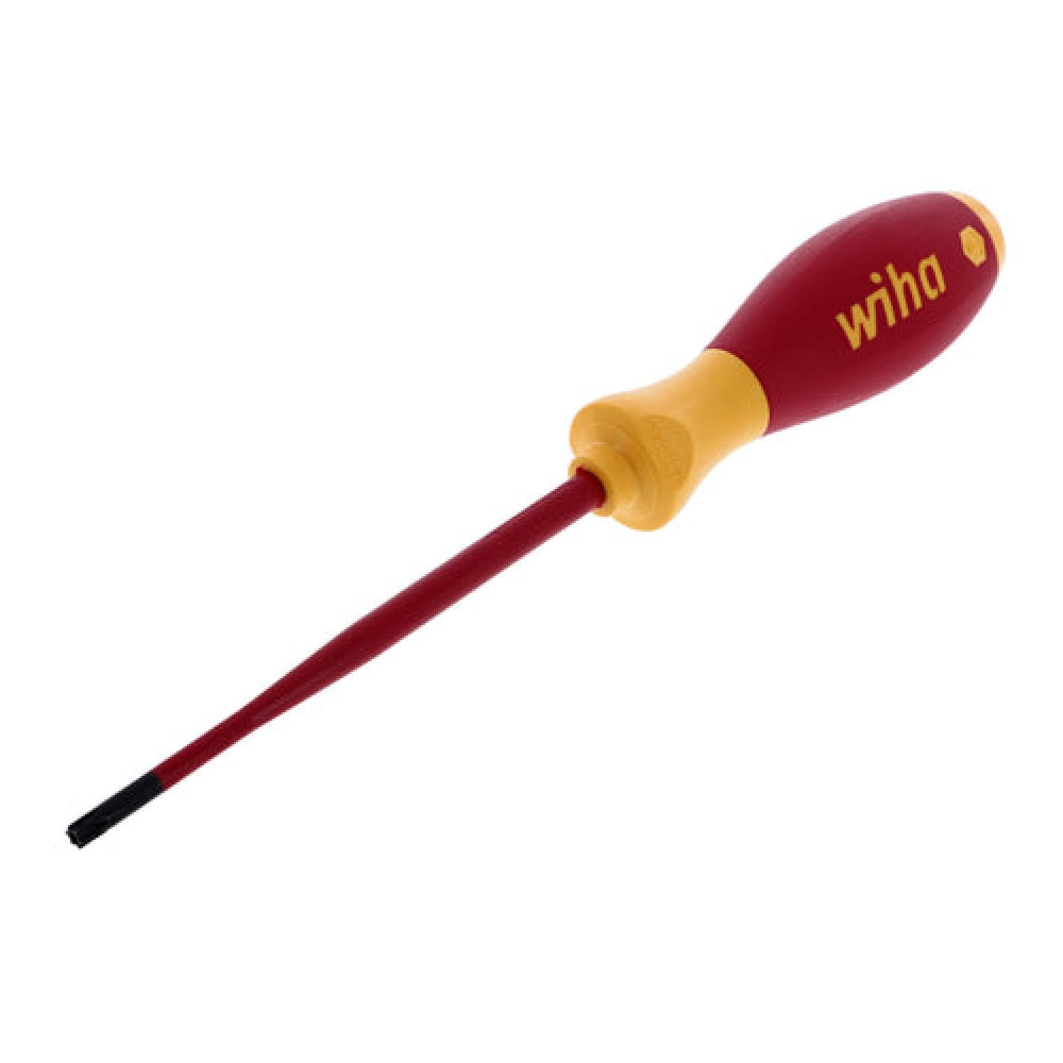 Wiha Insulated SoftFinish® Cushion Grip screwdrivers are the standard for premium quality featuring ergonomic cushion grip handles for comfort and control, dual durometer construction for long-lasting durability, and handles directly molded to the blade for a permanent bond. The handles are sized proportionate to the blade for consistent mechanical advantage, include parallel flats to prevent table-top roll-off, and have driver tip profiles labeled on the cap for easy identification. Wiha Insulated SoftFinish® Cushion Grip screwdrivers consist of Wiha engineered premium quality tool steel for strength and durability, have black oxide finish for corrosion protection, and feature exact fit precision machined tips for reduced cam-out. All Wiha Insulated screwdrivers are VDE Certified and meet EN/IEC 60900 testing standards for protection against arc flash explosion, ASTM F1505 standard specifications for insulated and insulating hand tools, NFPA-70E standards for electrical safety on the jobsite, and CSA testing benchmarks for safety and performance. Wiha premium quality Insulated SoftFinish® Cushion Grip screwdrivers are designed and engineered by Wiha Germany and Manufactured in Germany. You can buy with confidence knowing that this product is Backed by the Wiha No Hassle Guarantee.