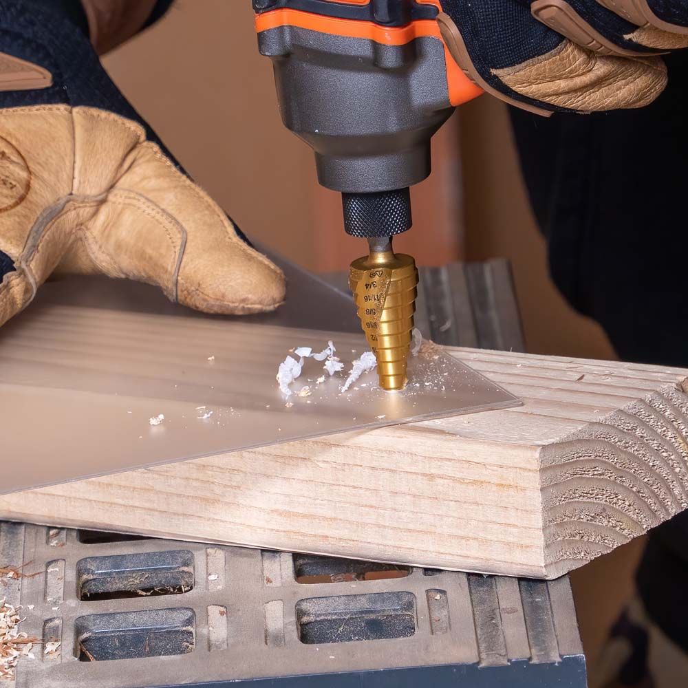 • All-Purpose Step Bit Kit with 4 common step bits sizes (1/2, 3/4, 7/8, and 1-3/8-Inch) cuts holes in wide variety of DIY applications and materials (up to 16 gauge steel, plastic, aluminum, wood)