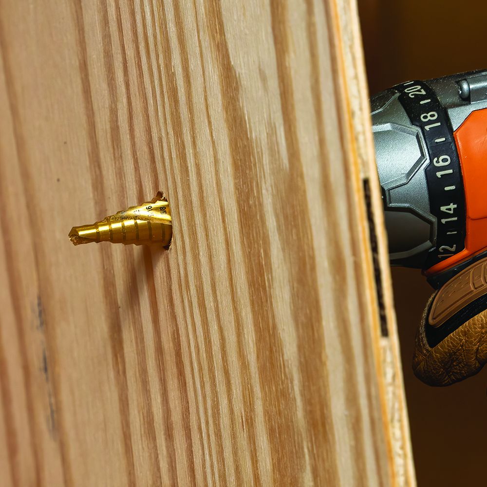 Titanium nitride coating makes your step drill bit more durable; debris is cleared and the bit cuts faster thanks to double-fluted grooves