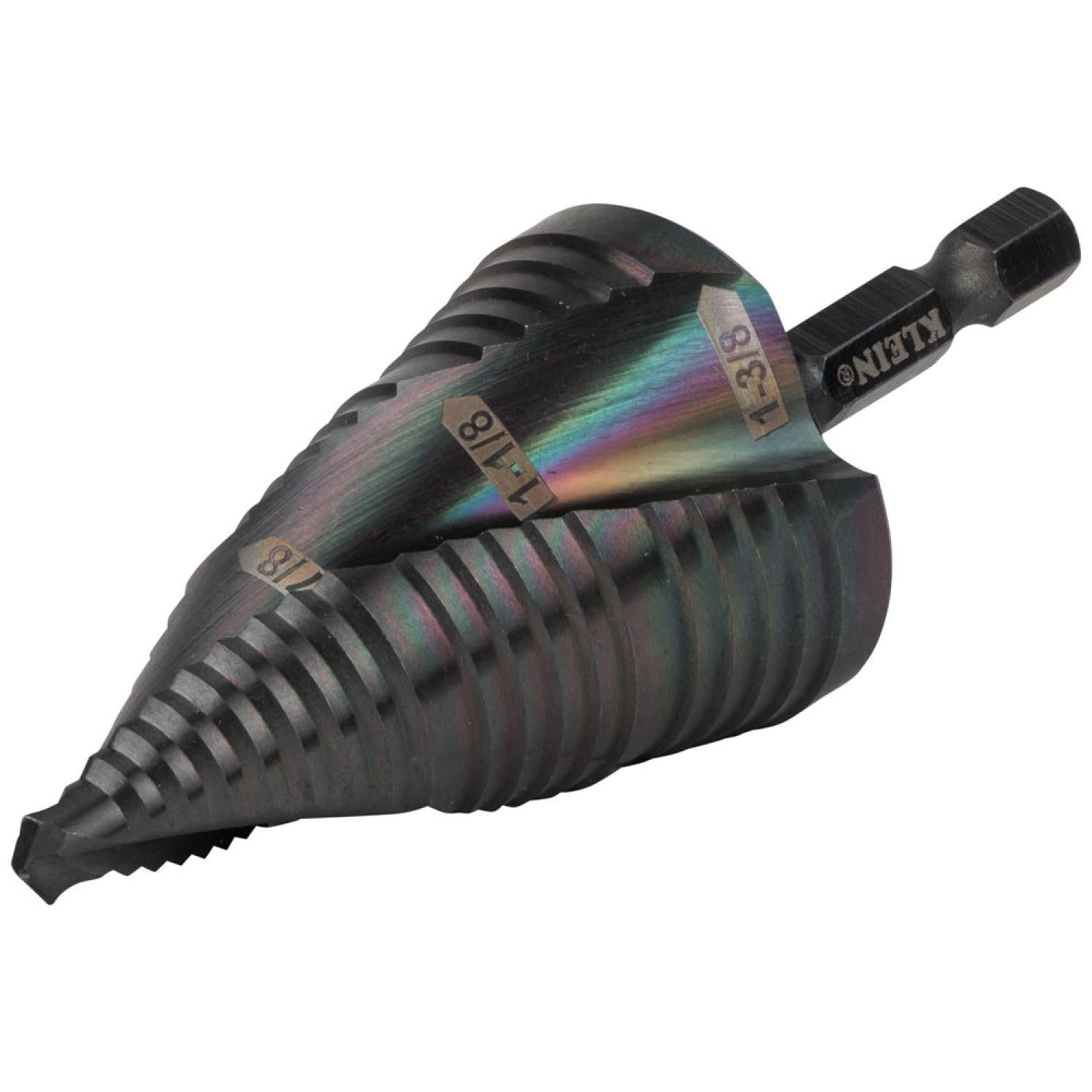 Klein Tools QRST15 Step Drill Bit, Quick Release, Spiral Flute, 7/8 to 1-3/8"
