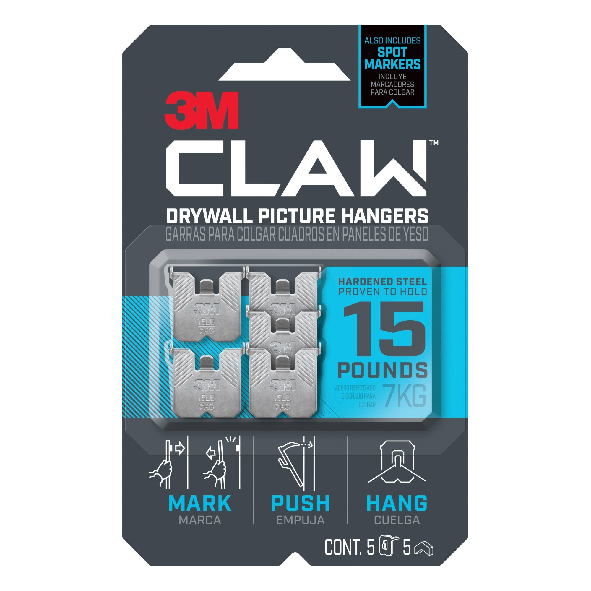 3M CLAW Drywall Picture Hanger 15 lb with Temporary Spot Marker 3PH15M-5EF, 5 hangers, 5 markersTrust your heavyweight hanging projects to the 3M CLAW™ Drywall Picture Hanger proven to hold up to 15, 25 and 45 pounds. The engineered hardened steel claws lock securely into drywall anywhere – just push, hang and you’re done.