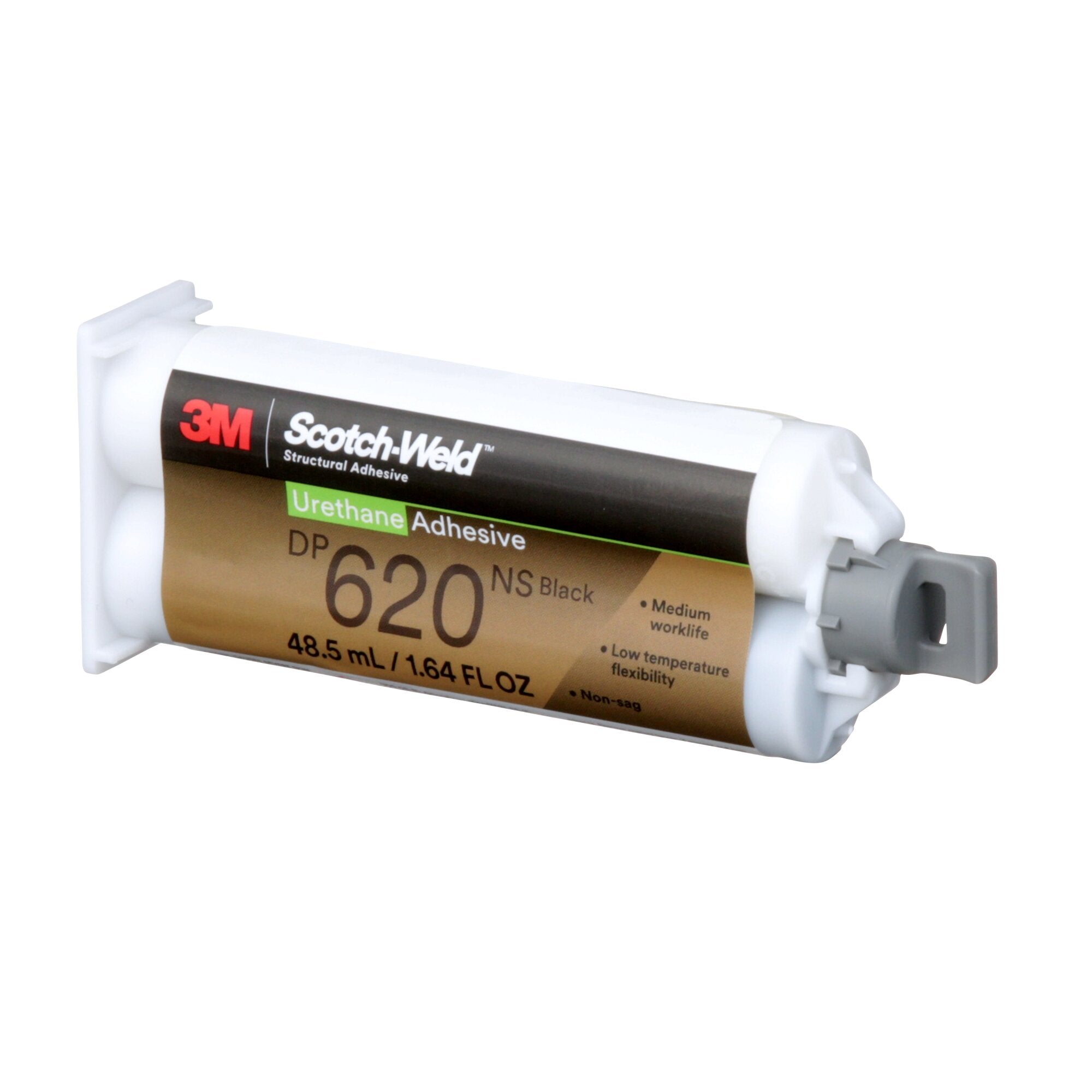 3M Scotch-Weld Urethane Adhesive DP620NS is a flexible, two-part polyurethane based structural adhesive that performs well in numerous applications where some flexibility is needed. It effectively bonds to many substrates such as composites, metals, wood, and many plastics and rubbers, ceramics and glass (may require primer for durability).