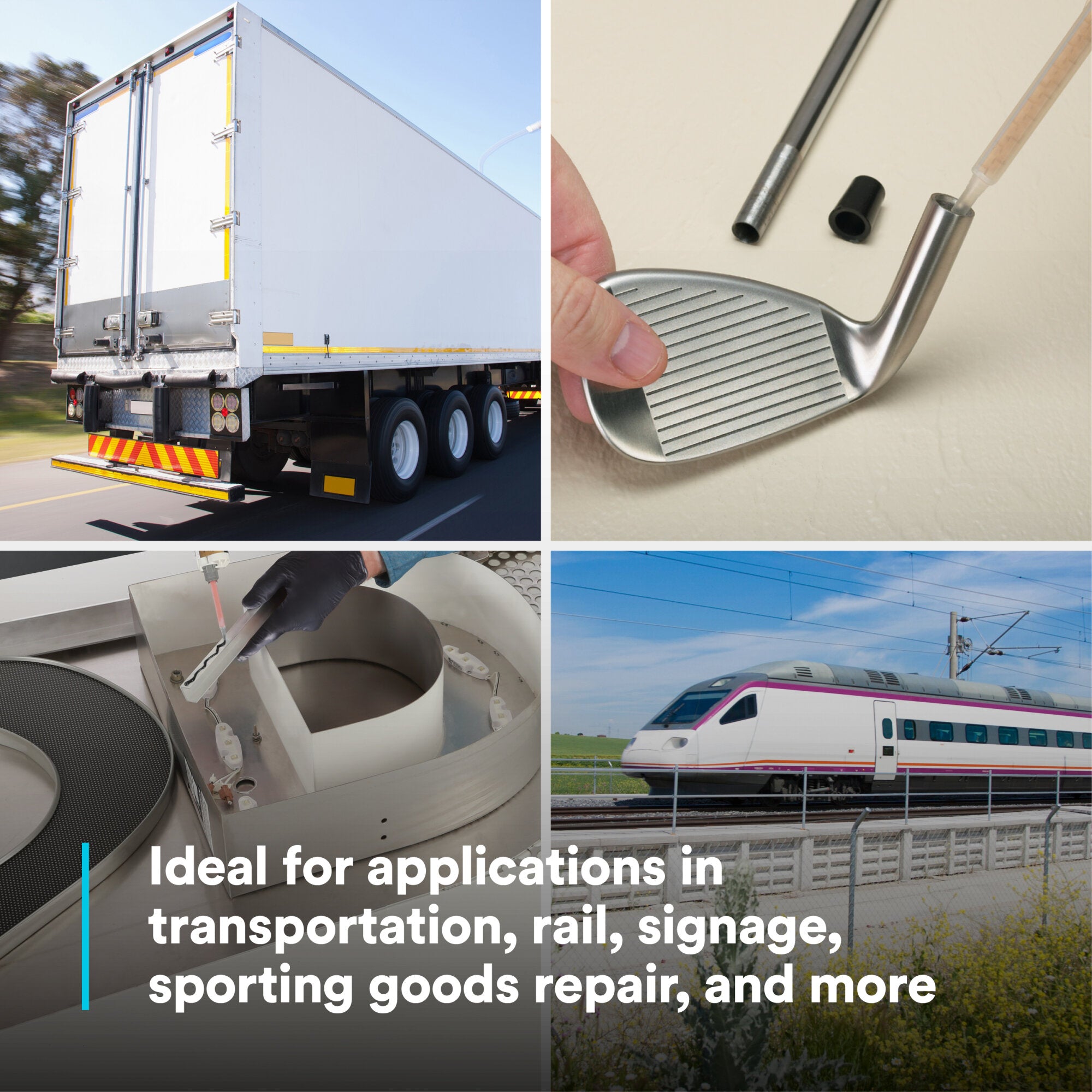 - KEY INDUSTRIES: Ideal for applications in transportation, rail, signage, sporting goods repair, and more
