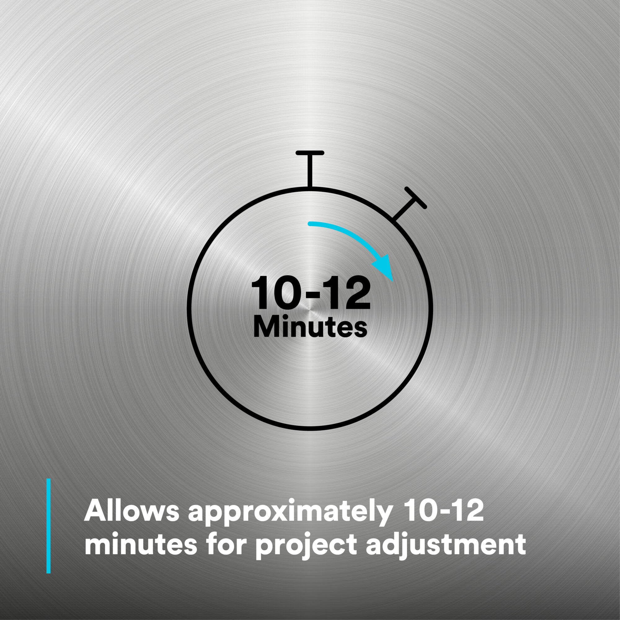 - WORKING TIME: Allows approximately 10-12 minutes for project adjustment