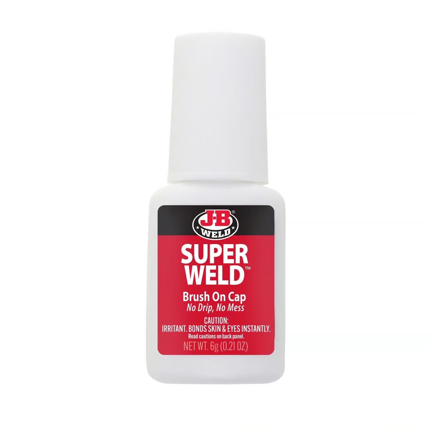 - J-B Weld SuperWeld Brush On is a specially formulated cyanoacrylate Super Glue that provides a strong, instant bond in just seconds