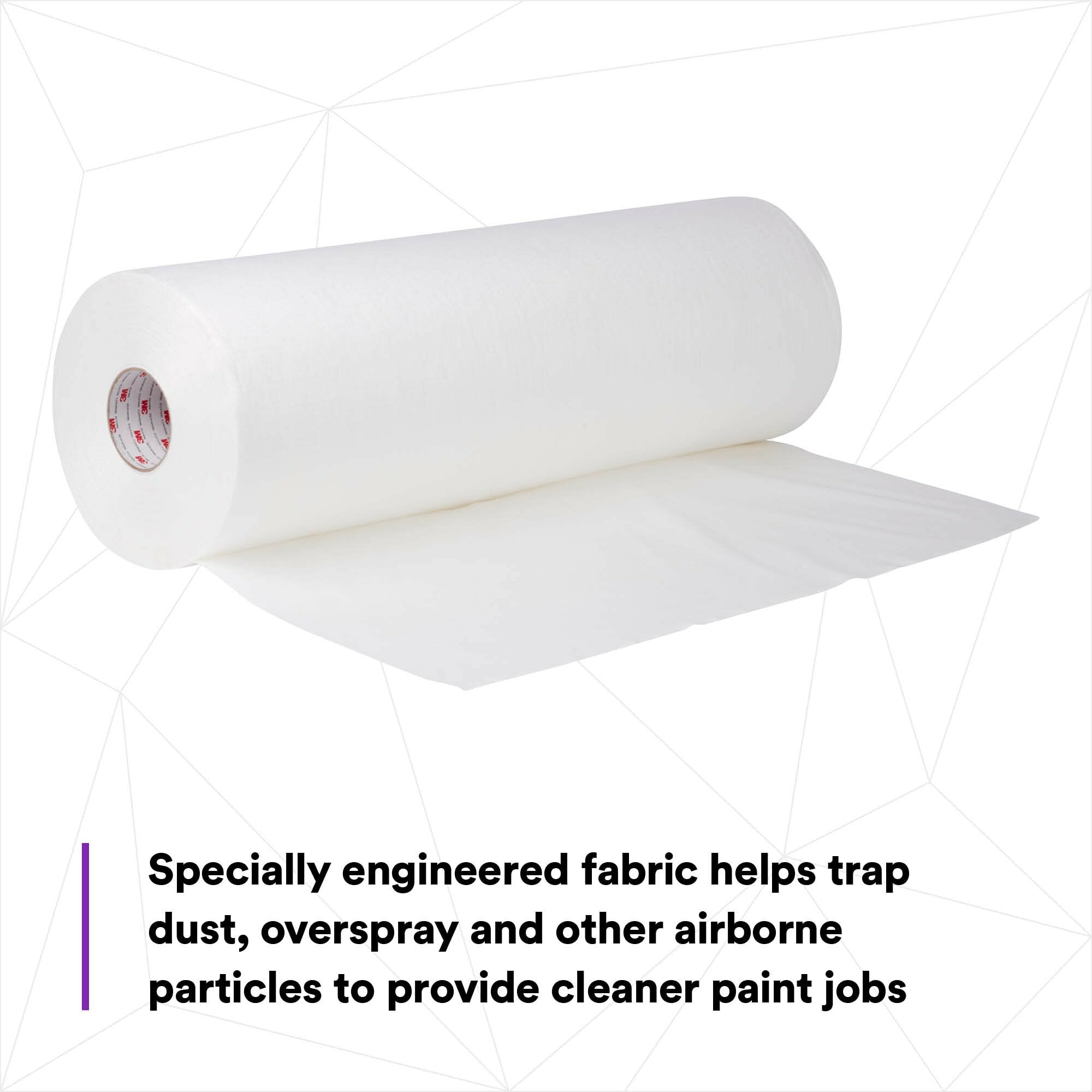 3M Dirt Trap Nonwoven Protection Material is a specially engineered covering material that protects and brightens paint booth walls and floors. Nonwoven construction traps dust and overspray and its bright white color creates better visibility for technicians and a more pleasant shop appearance for collision repair customers. Low tack adhesive backing keeps it secure, smooth and wrinkle free.Engineered for a Cleaner Shop