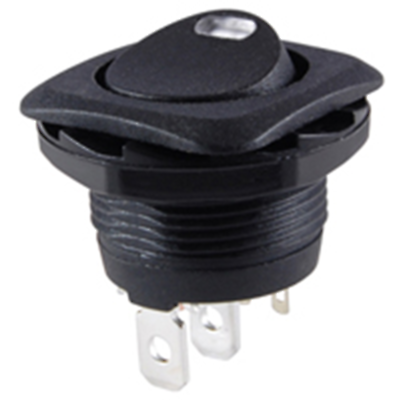 ROCKER SWITCH ILLUMINATED ROUND HOLE SPST ON-NONE-OFF 16A 125VAC RED LED .187 TAB TERMINALS
