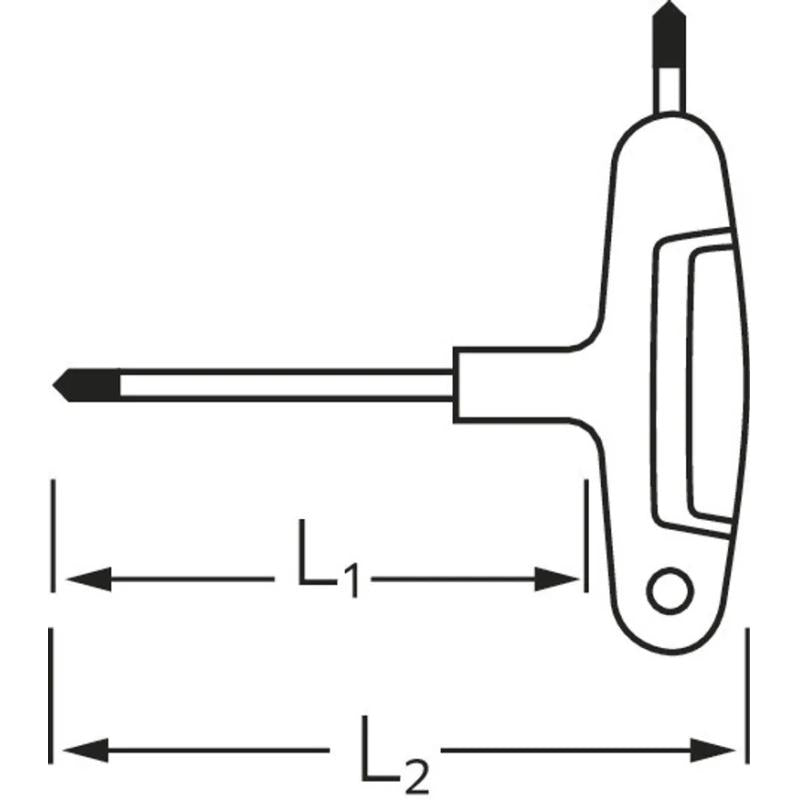 Torx T-screwdriver for screws with TORX internal profile. Chrome-Vanadium, matt chrome. Burnished end.