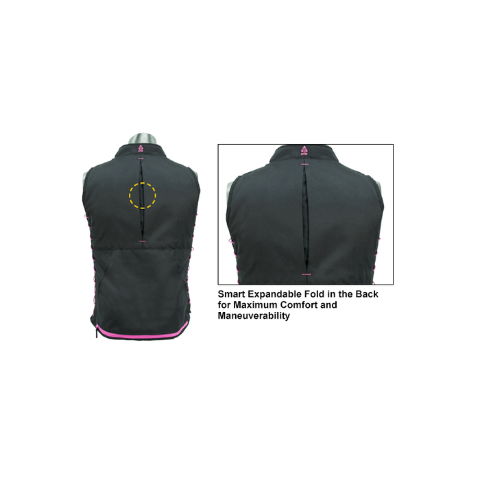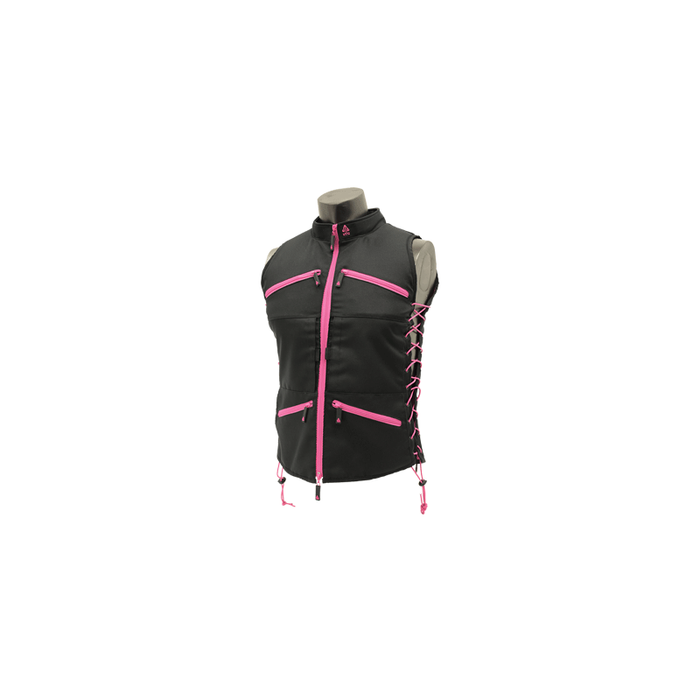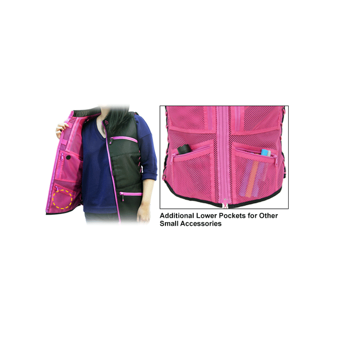 • 26 inch Long Front and Back Panel Design with High Quality Bright Pink Accent Colored Elastic Cords Threaded Through 10 Pairs of Eyelets on Each Side of the Body to Adjust the Vest Girth from 36 inch to 54 inch for Optimal and Shapely Fit on Small, Medium or Large Builds; Trim Excessive Cords and Heat Seal the Ends