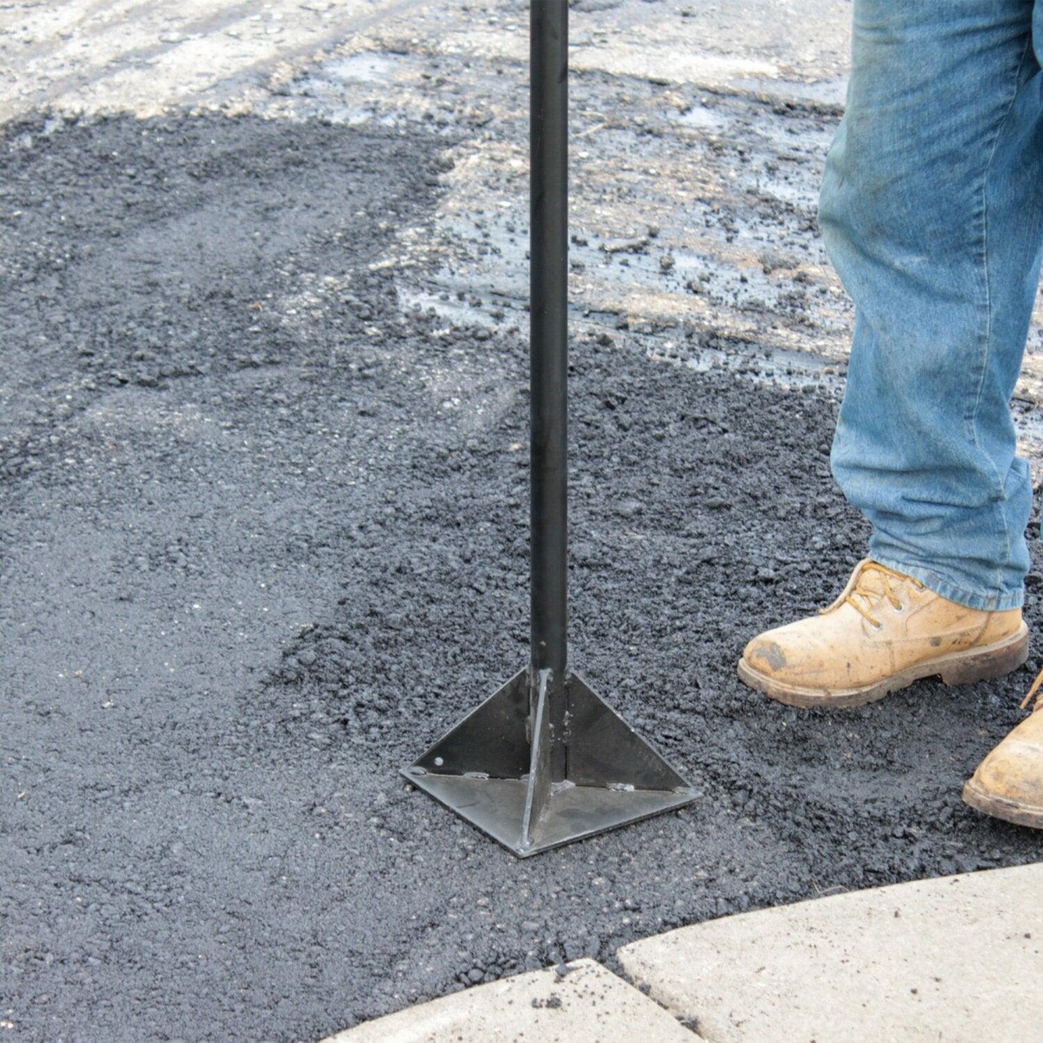 This heavy-duty one-piece all steel Tamper will get the biggest jobs done! The 8"x8" square head creates a strong base for flattening and leveling asphalt, dirt and other materials. The tool is designed as one piece for rugged professional use. Steel pipe construction features welded gussets for increased strength. This 12 pound tamper is heavy enough, to make an impact while still being able to maneuver it. The tamper stands 48" tall with a rubber end grip for comfort. Ideal for fixing pot holes.