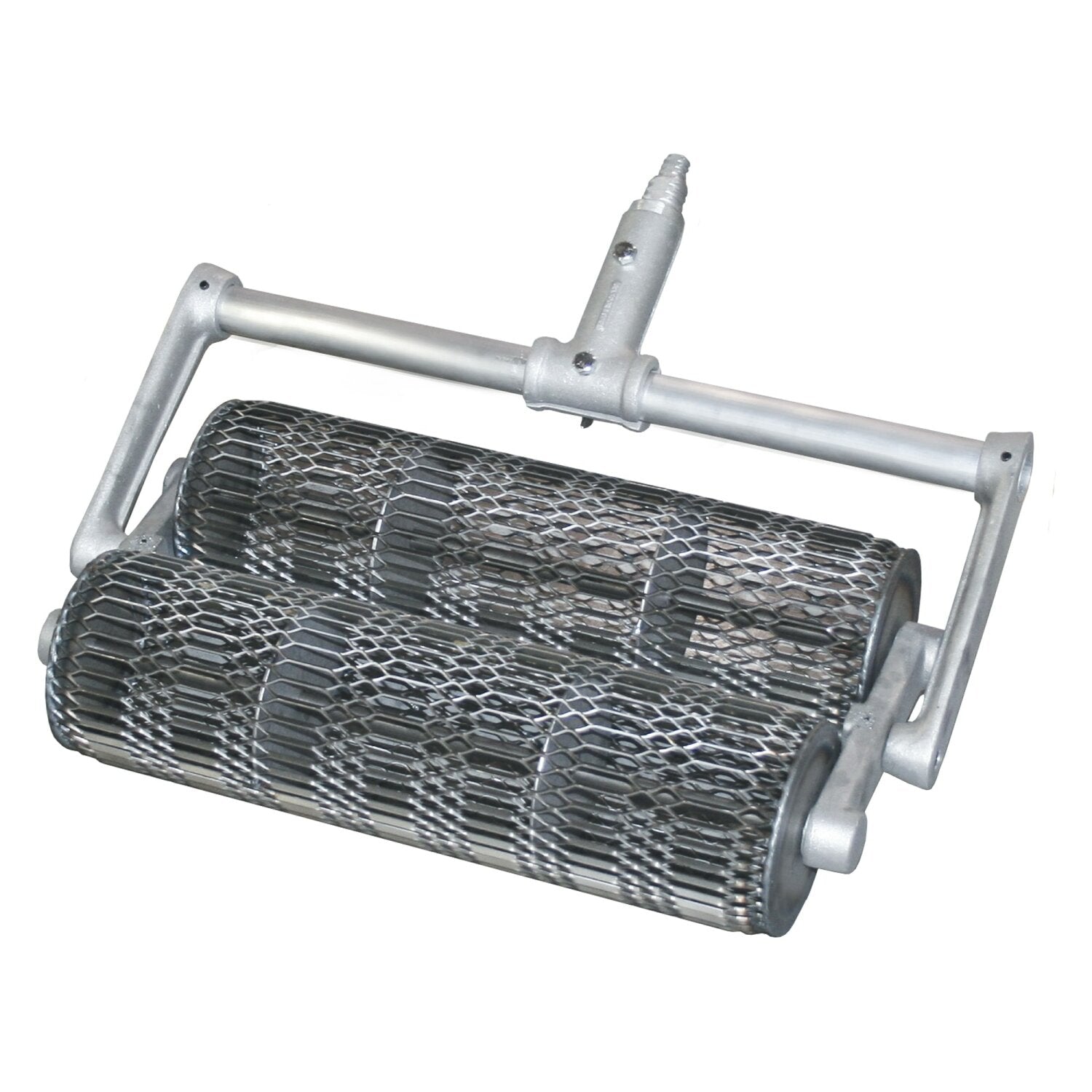 This 18" long double roller tamp prepares the surface of a slab for a smoother finish. The two rollers depress the aggregate and brings the fat to the surface of a slab in a uniform fashion. Each 5" diameter roller has a special roller tamp screen to optimize the work. Using this tamp will level the slab in half the time and does a better job than other conventional tampers. The tamper can also be used to create a non-skid surface when rolled over for a final finish. Use with a threaded bull float handle, sold separately. Molded threads on bracket for a secure handle connection. Use an adapter for use with button handles, sold separately. Rollers are replaceable to extend the life of the tool; use 18" Roller (CC949).Double Roller Concrete Tamp does double the work to minimize the number of passes over an area. The tamp can first be used between screeding and floating to level the surface. The special roller tamp screen presses down the aggregate to bring the cream to the surface for a uniform finish. The roller can also be used during the final finish to create a non-skid surface on surfaces such as cattle pens. The rollers are offered in 18”, 36” , or 48” lengths. A 36” Single roller tamps are also available. Rollers are available with choice of threaded, 1-3/8” button, or 1-3/4” button buill float handle adapters.
