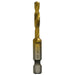 FeaturesSplit-point tip resists walking and penetrates material faster . Strong, high-speed steel provides superior resistance to heat and abrasion. Titanium Nitride coating ensures that the bits run cooler, drill faster, and last longer. Optimized core for significantly reduced torque on the user and extended tool life. Designed to drill in up to ¼” thick material. Durable case and quick-change adapter included.