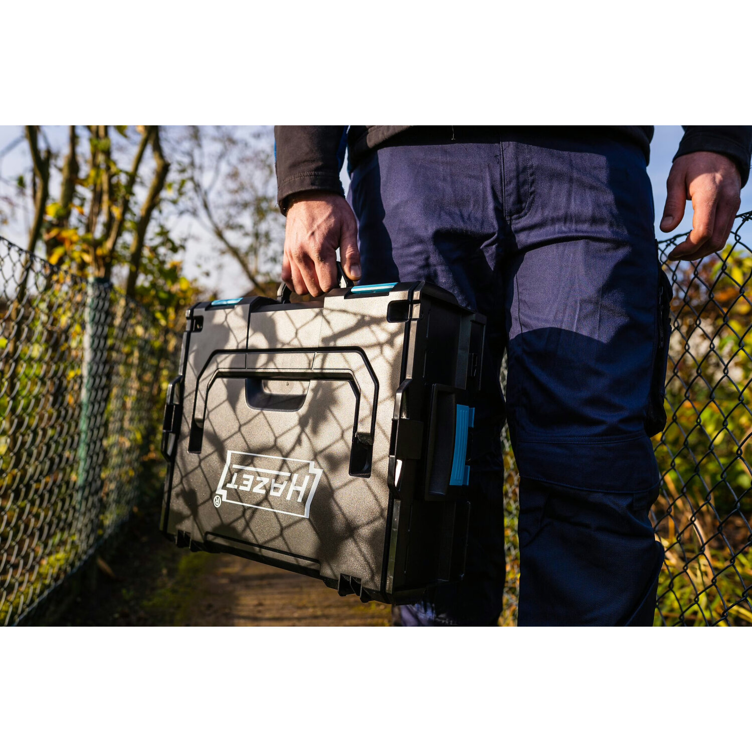 Patented click system connects the L-Boxx to other L-Boxxes easily and reliably