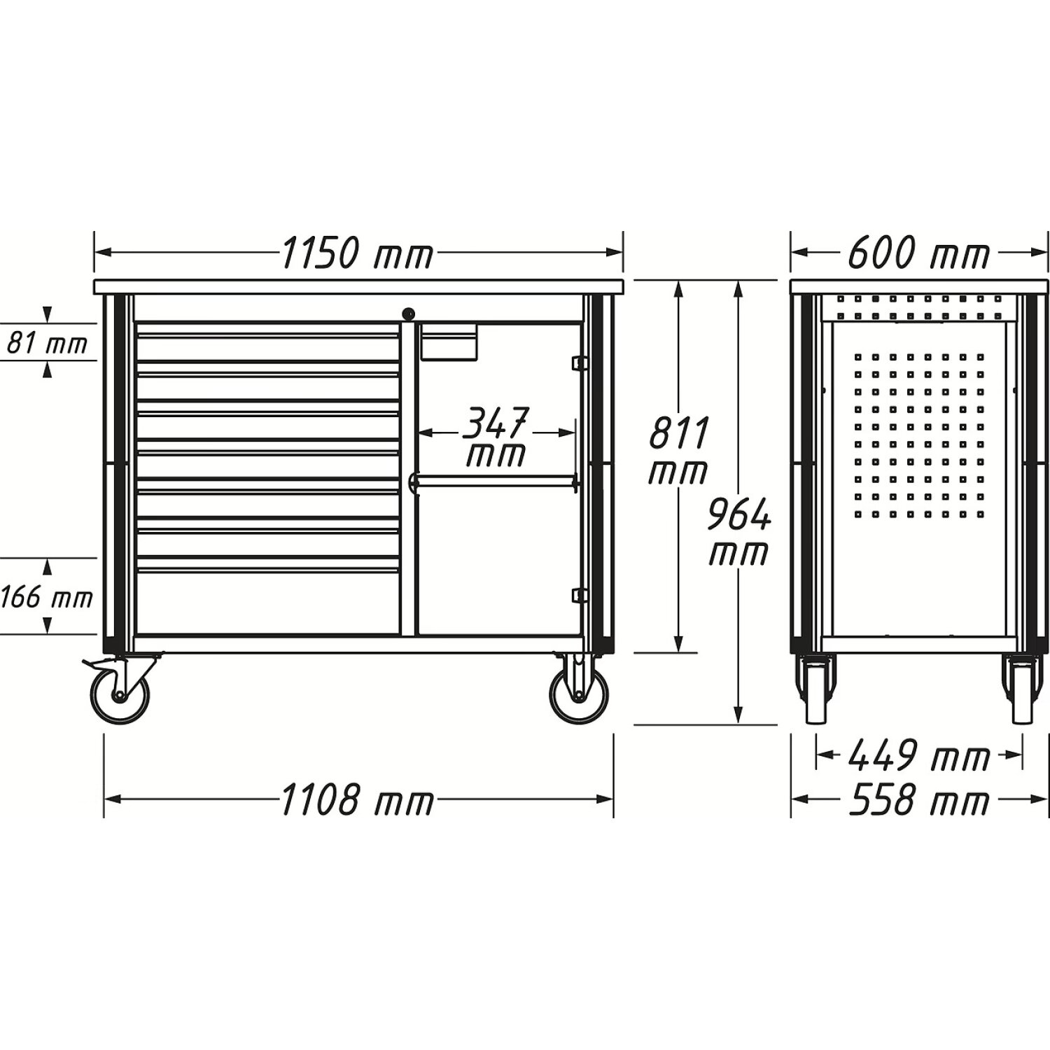 1 high heavy-duty drawer, loading capacity 40 kg, 166 mm high
