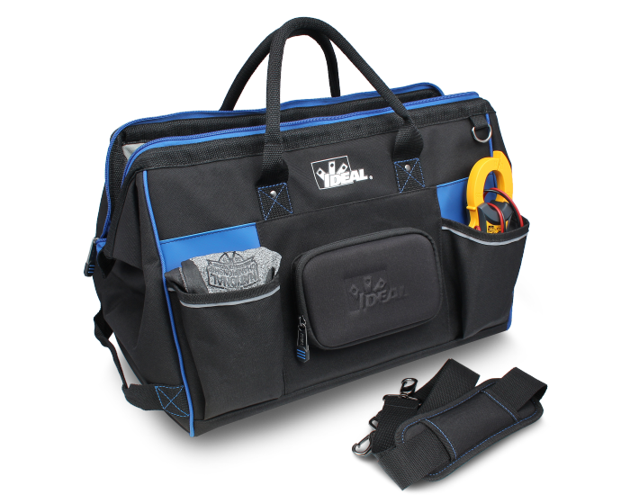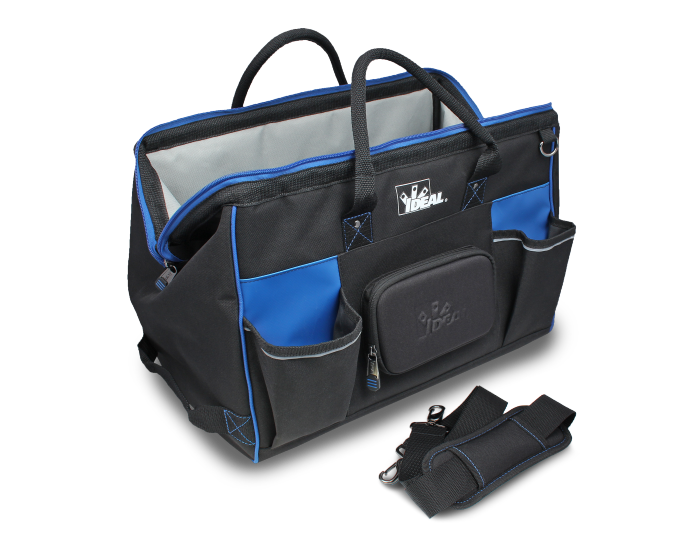 The IDEAL® Pro Series Large Mouth Bags feature a sturdy design that opens completely for ease of access to tools and equipment. Multiple interior and exterior pockets including a protective phone/sunglasses case allow you to store and carry what you need for every job.