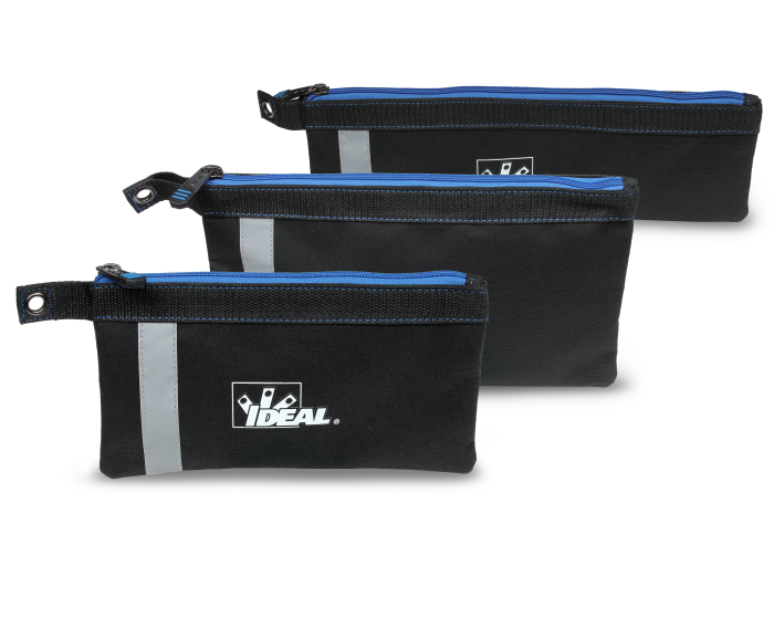 The IDEAL® Pro Series Flat Zipper Pouches make storing and organizing quick and easy for every tradesperson. Featuring a durable design with multiple sizes and colors, these pouches will keep your tools protected while keeping your space clean and organized.
