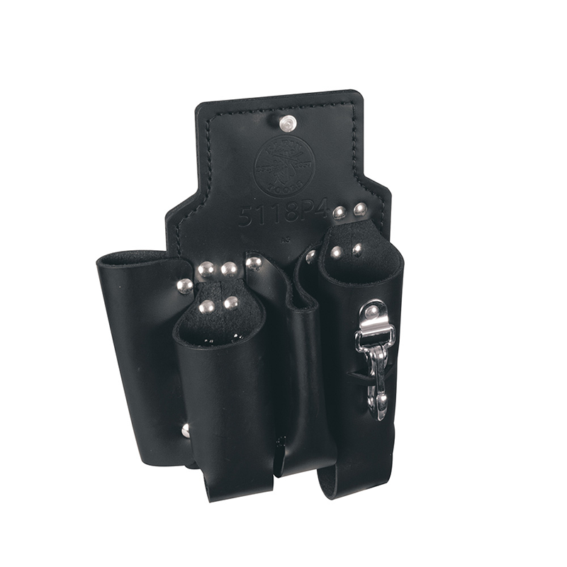The Klein 5118P4 Lineman 4 Pocket Pouch makes it easy for utility workers, electricians and other tradespeople to conveniently carry tools and equipment from jobsite to jobsite. The pouch features leather construction with a double leather back for durability. The 5118P4 incorporates a rivet hole for belt connection for hands free use, and is riveted to assure long life and wear. Includes four (4) pouches for a knife snap, pliers, most screwdrivers, 6 foot folding rule and open ended wrenches.