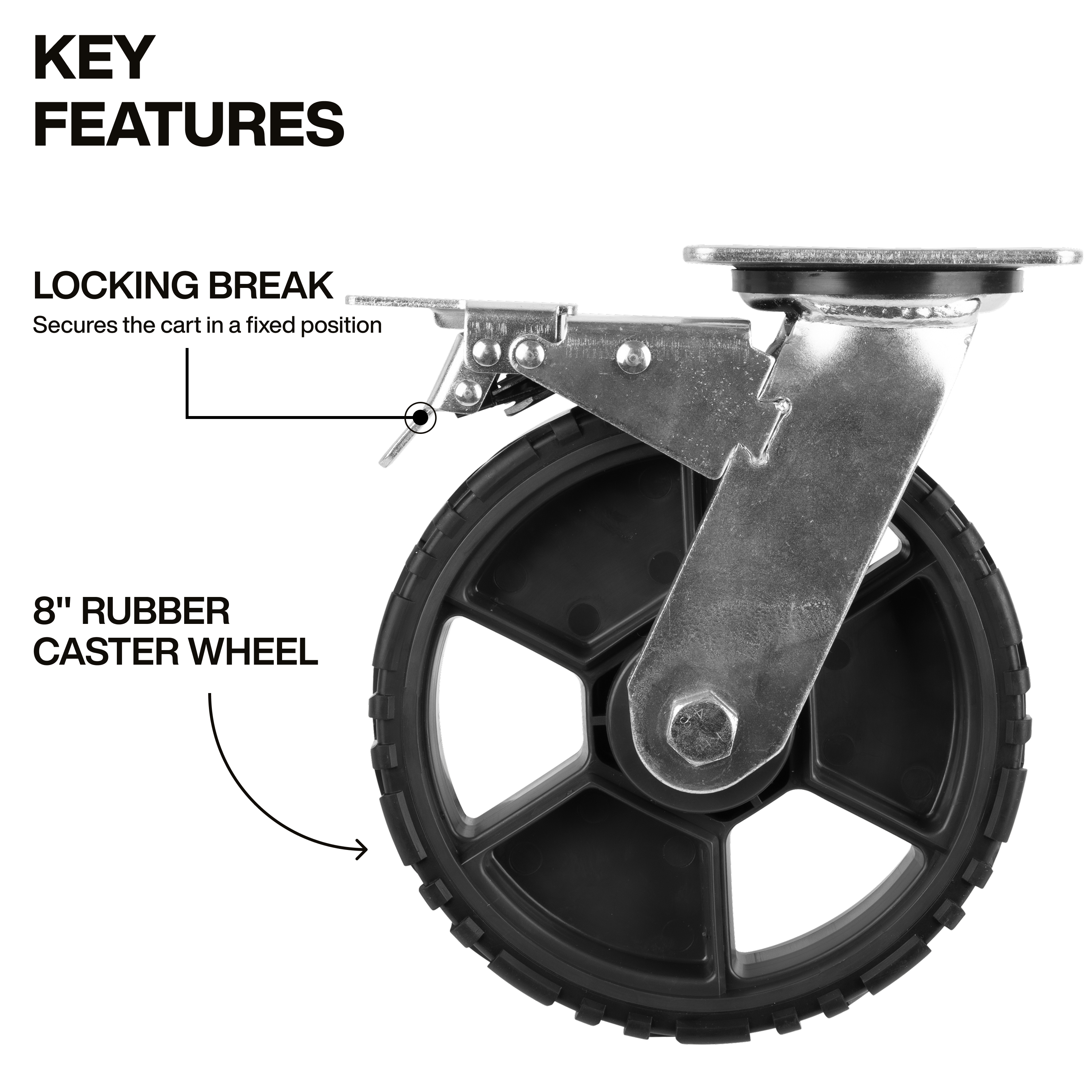 - 8-Inch heavy duty caster wheels deliver smooth, stable transport across various surfaces