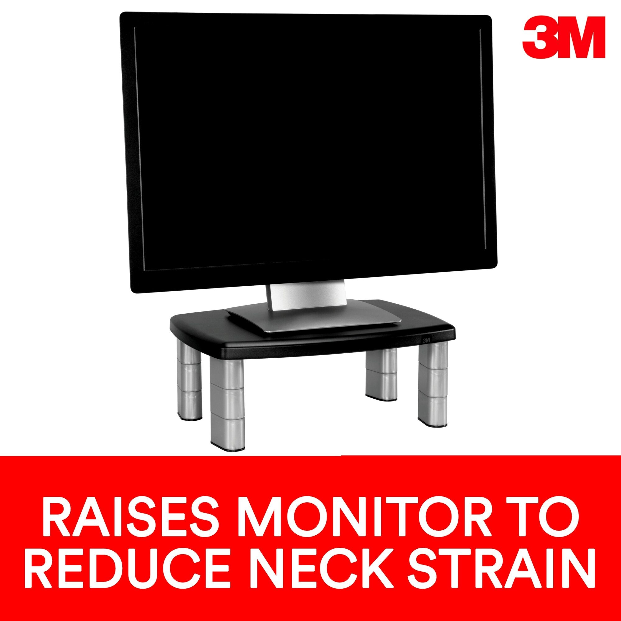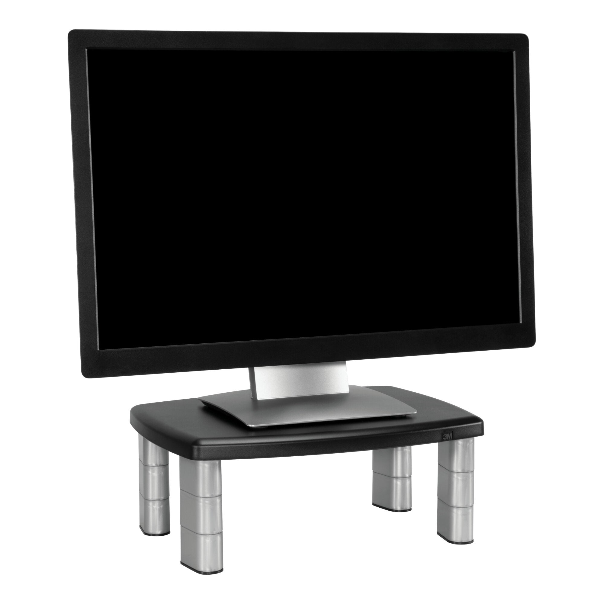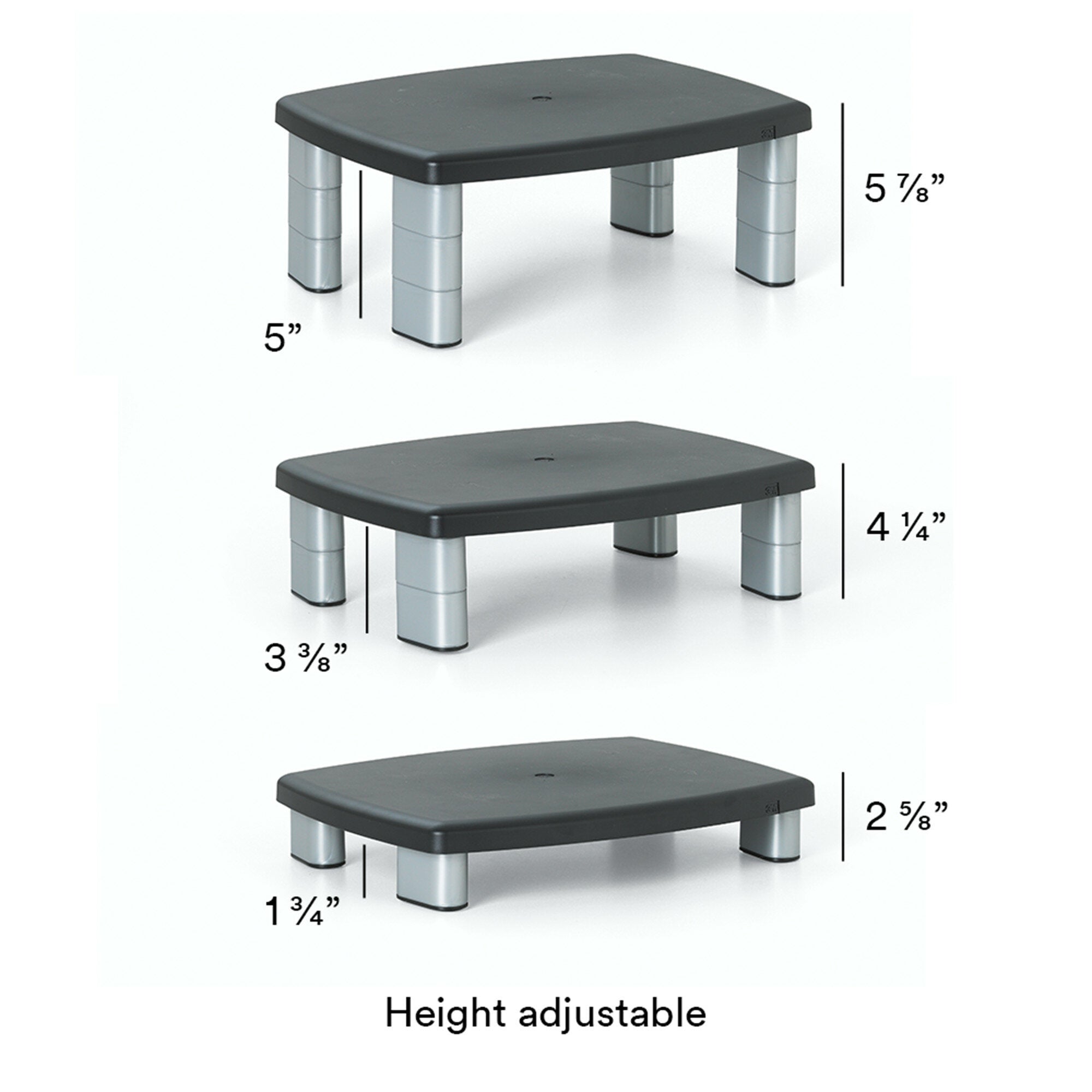 - Contemporary design with stacking columns raises monitor from 1" to 5 7/8" in increments of 1 5/8" to an ergonomically correct level