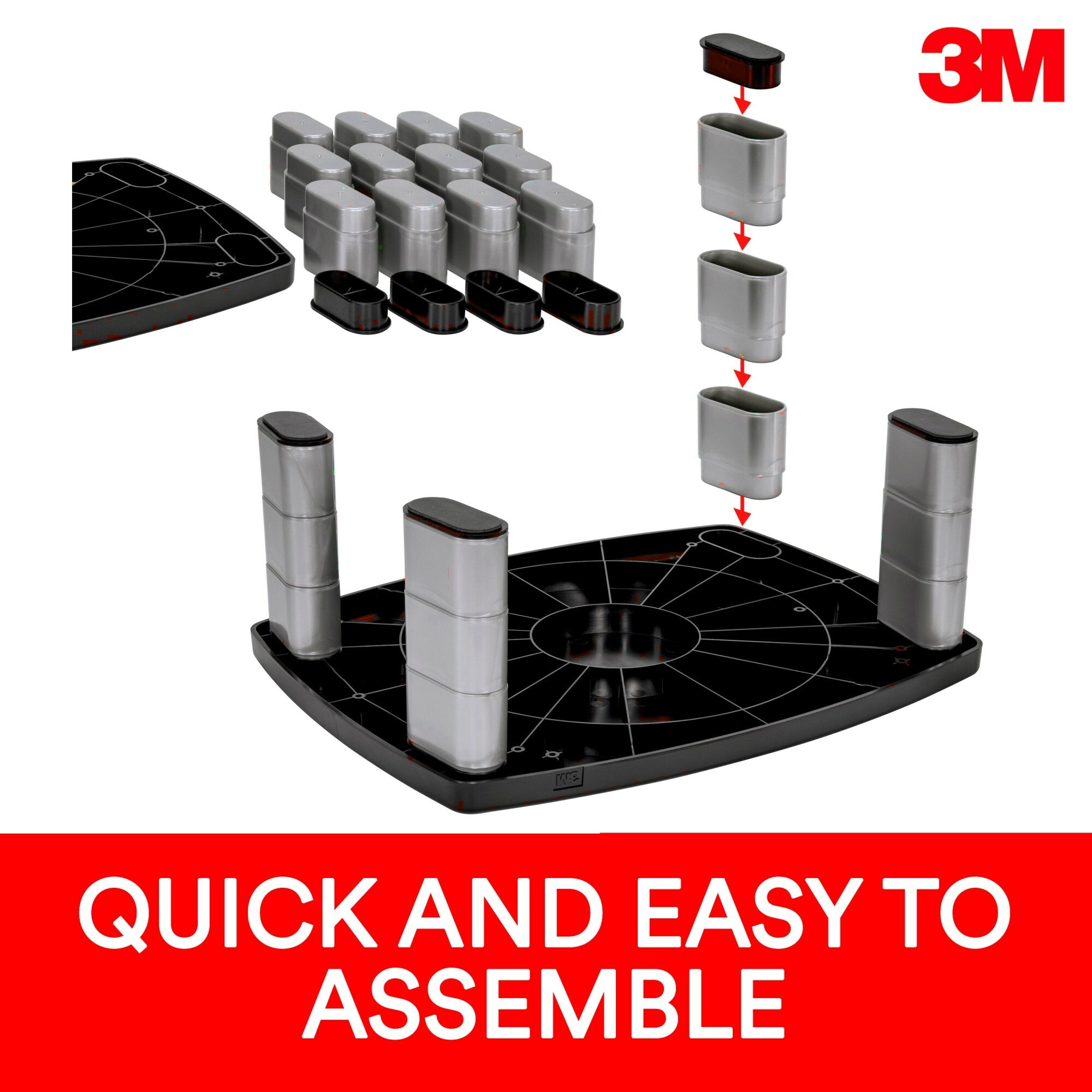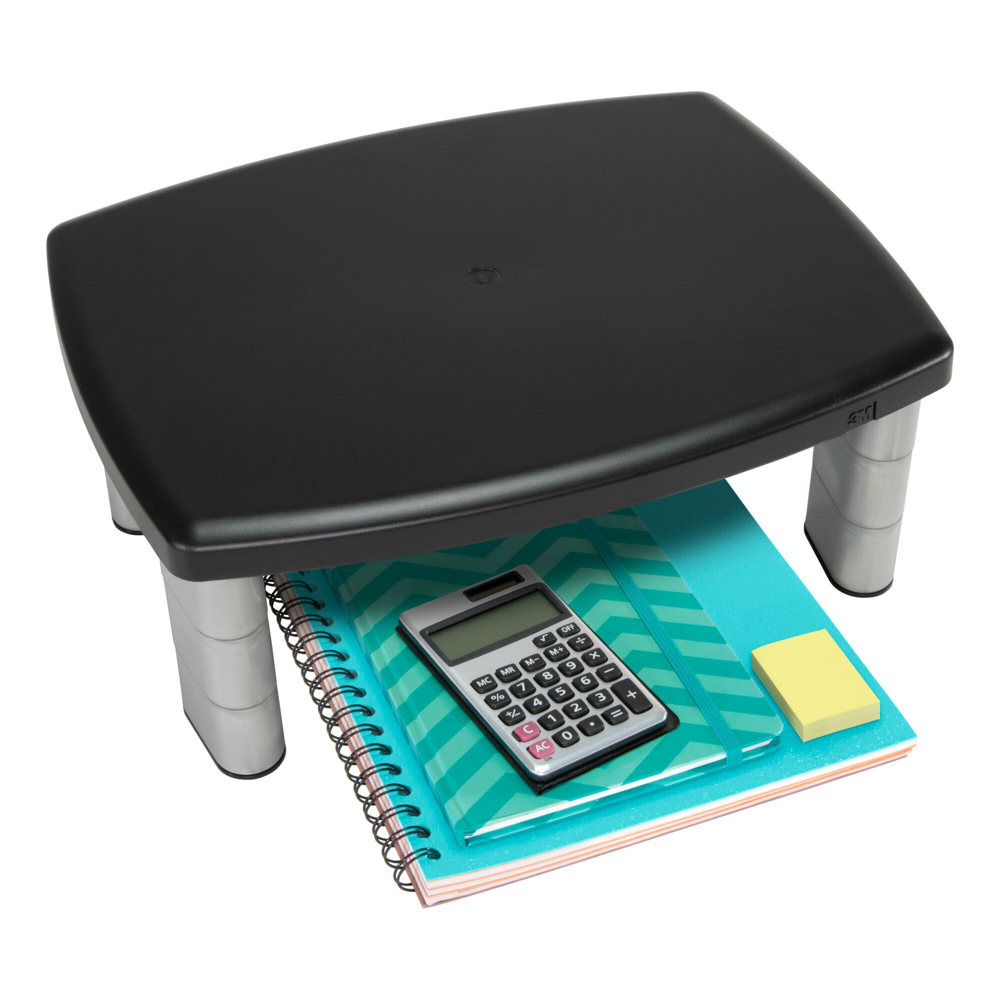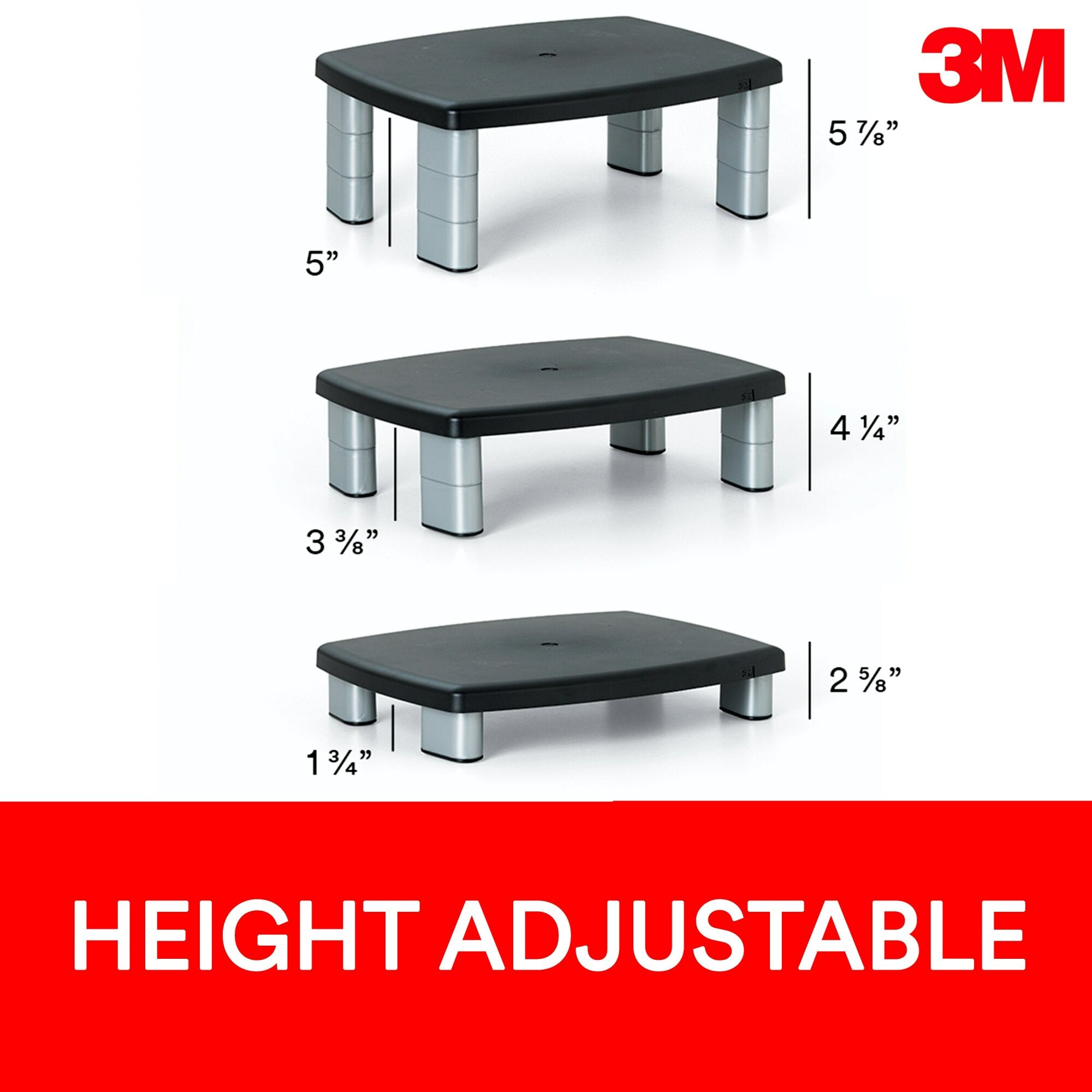 - Contemporary design with stacking columns raises monitor from 1" to 5 7/8" in increments of 1 5/8" to an ergonomically correct level
