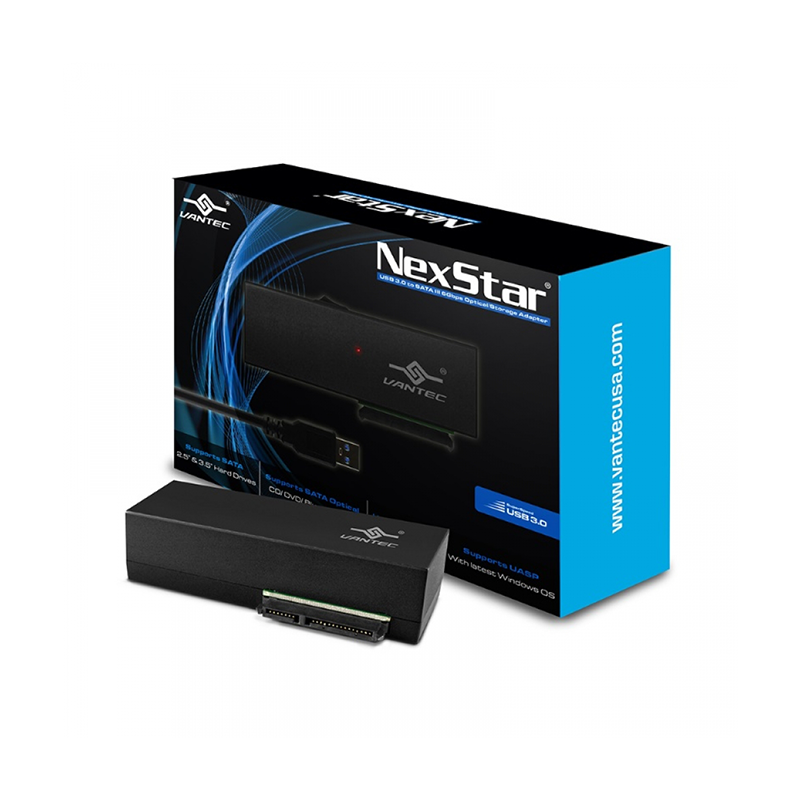 The NexStar USB 3.0 to SATA 6Gbps Optical/Storage Adapter is a simple solution to connect any existing SATA 5.25” Optical drive to your USB port. Optical Drives like Blu-Ray, DVDRW, DVD ROM, CDRW and CD ROM are perfect companion with this adapter. It is as simple as connecting up the unit to the adapter, power it ON and you have access to your Optical drive. You can even use this adapter for any 2.5”/3.5” SATA SSD/HDD and it will run at screaming speed with UASP support. This Optical/Storage adapter is perfect for any bare SATA storage drives that you like to get it connected. This is a perfect tool for quick Plug and Play, hot-swapped between drives without opening your case, “NDN” (No Drivers Needed), and it works with common OS like Windows/OS X/Linux. This compact and lightweight design makes for easy storage and portability.