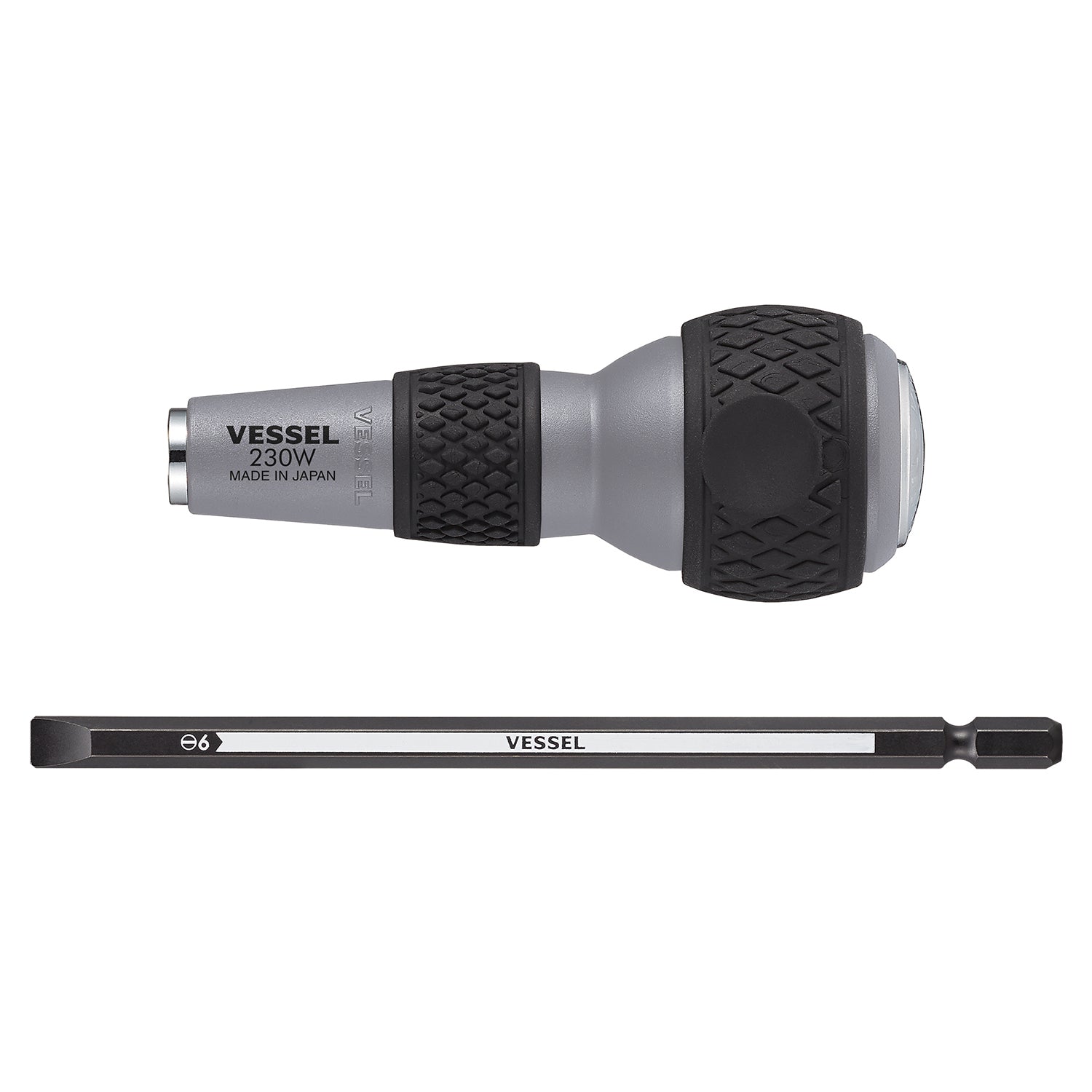 Vessel 230W6 Ball Grip 1/4" Hex. Bit Interchangeable Tang-Thru Screwdriver Set No.230W-6