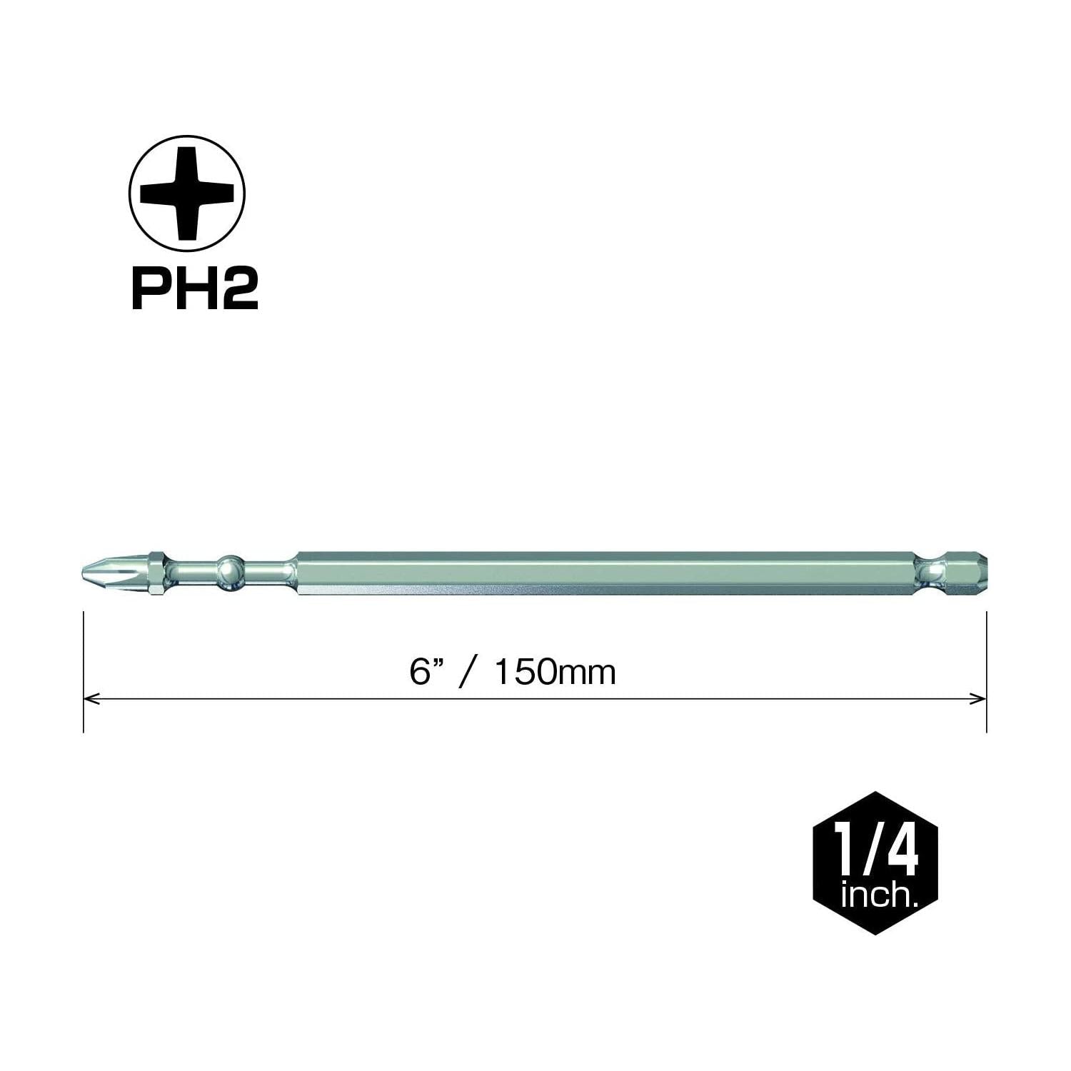 - 1/4" Drive Phillips no. 2 power bit with Mag charge holder