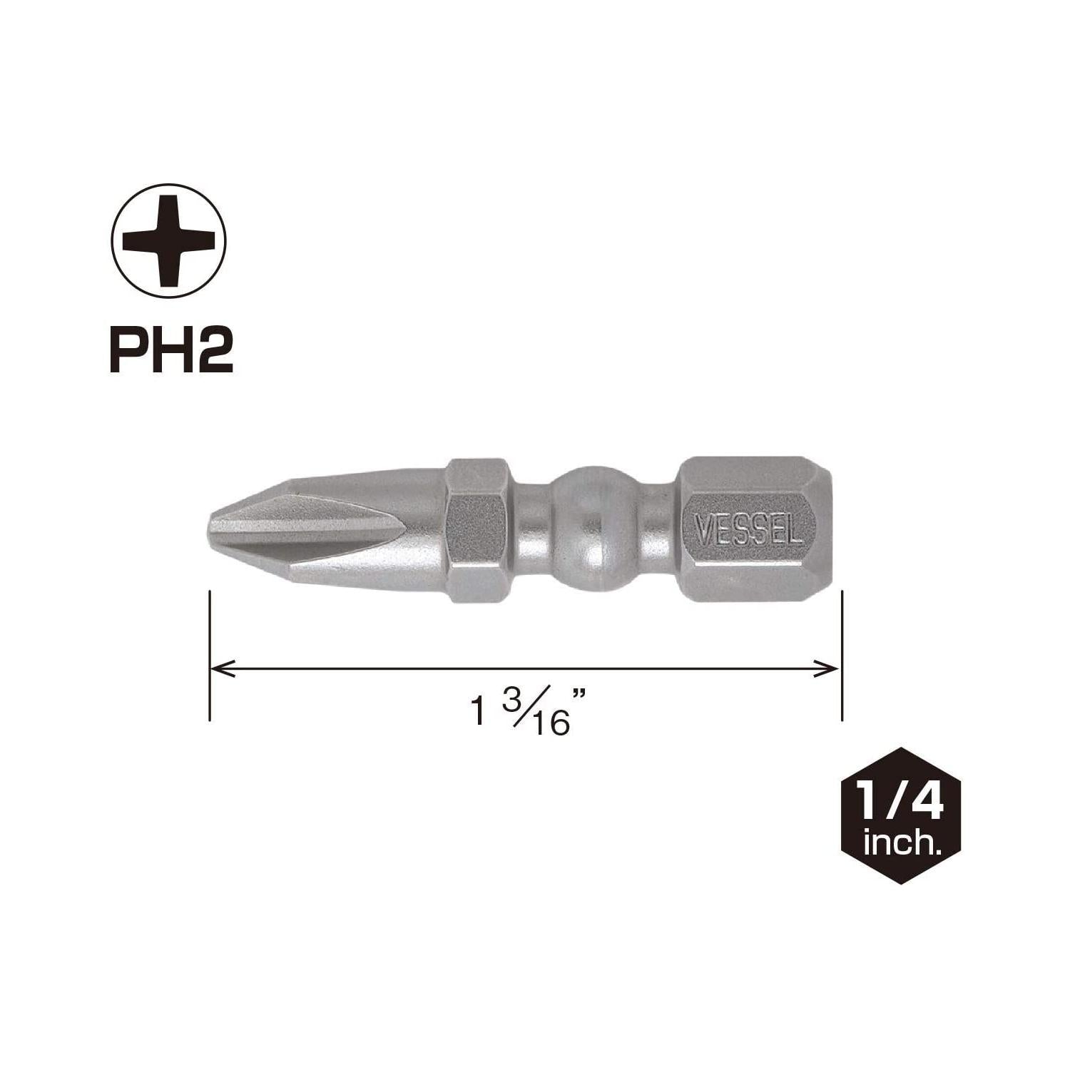 Vessel Tools IBMG30PH2K5 Impact Ball Torsion Bits PH2 x 30 5 Pieces with Magnetic Charge Holder