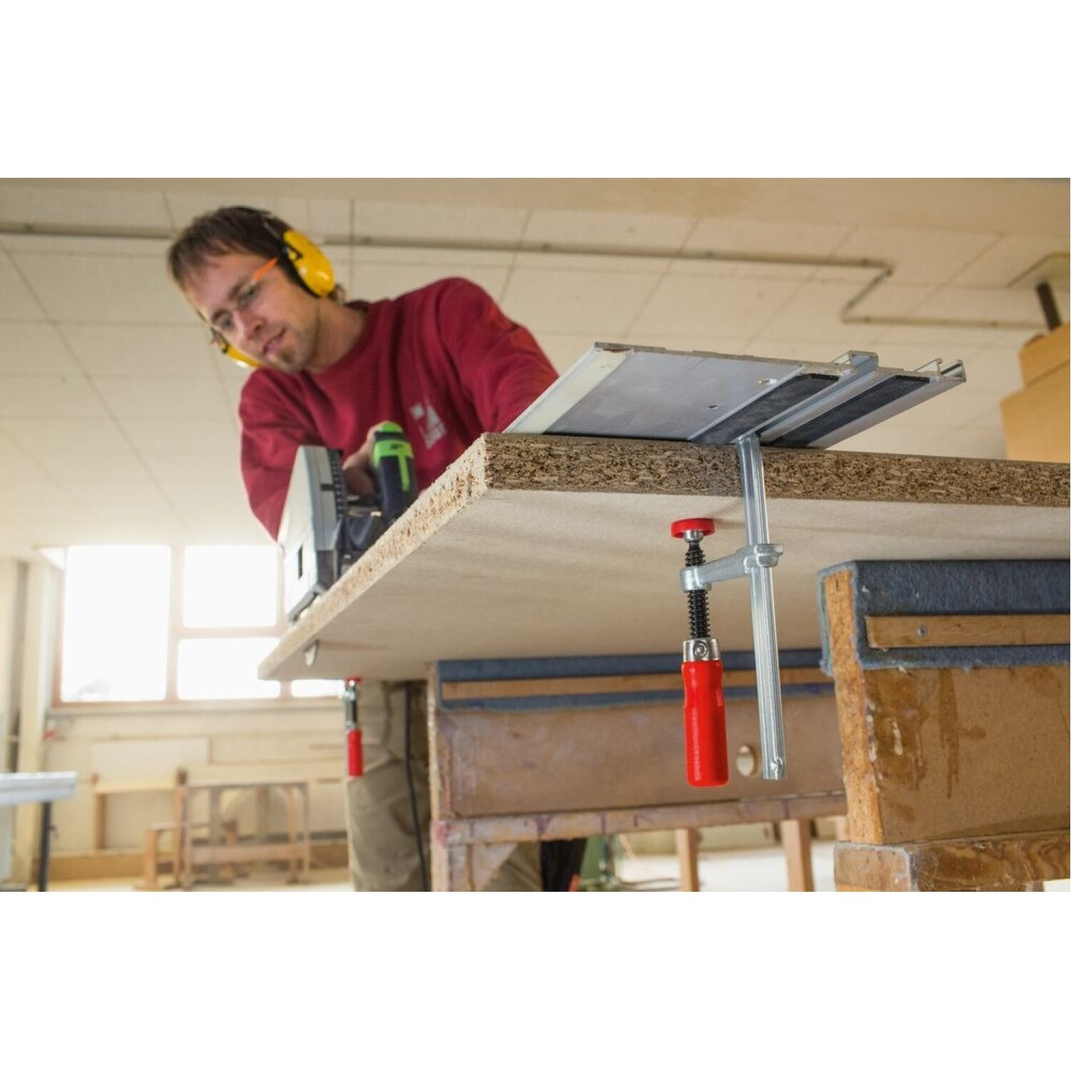 • For secure fastening of guide rails from Festool, Protool, Metabo, Makita, Hitachi, etc. and for clamping in profiles as well as work tables