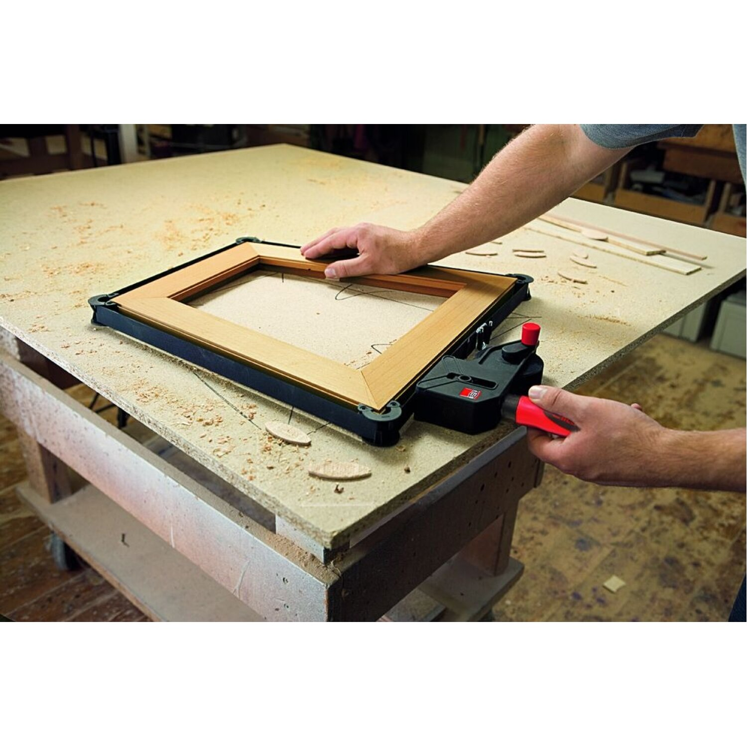 High quality strap clamp places even pressure on mitre joints. Applies a positive, even pressure on all joints, perfect for clamping square,round, rectangular or irregular shapes. Comes with 4 pivoting Vario corners.