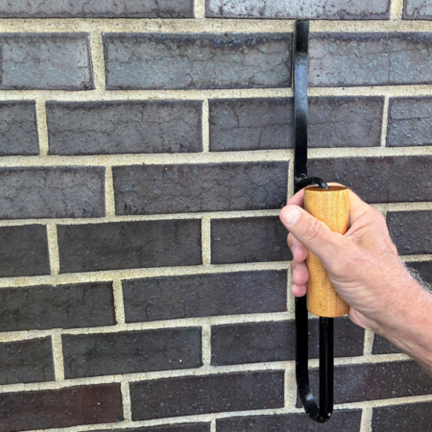 The highest quality sled runner on the market. Use this tool to make rounded sunken rodded masonry joints. Creates a consistent 1/2" concave joint every time. The tool quickly and efficiently makes long, straight and even joints making it ideal for concrete block walls. Made from high quality steel blade for durability. The 17" long work surface saves a mason time on long block walls. One end is turned up to drive thru the mortar joints. The other end loops back up also creating a turn up end. The loop style construction adds weight and force for moving thru mortar with ease. The wide diameter, 4-3/4" long smooth wood handle provides a comfortable grip. Proudly made in the USA.