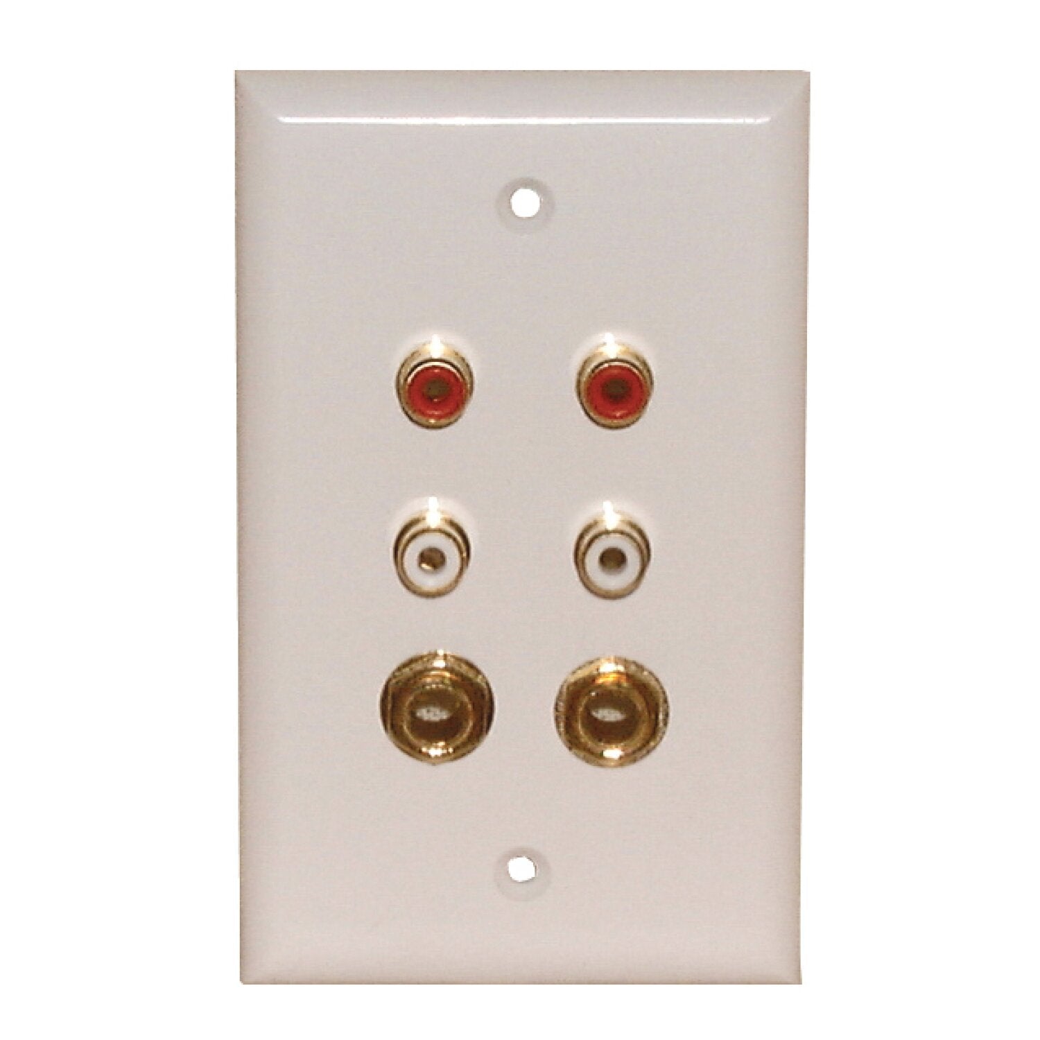 - (4) RCA jacks (2 each red, white) + (2) 1/4" stereo jack
